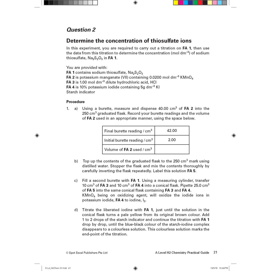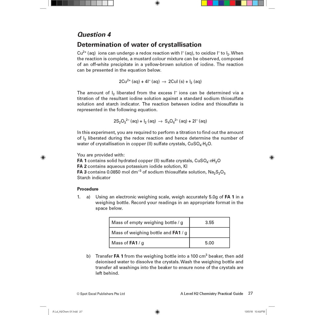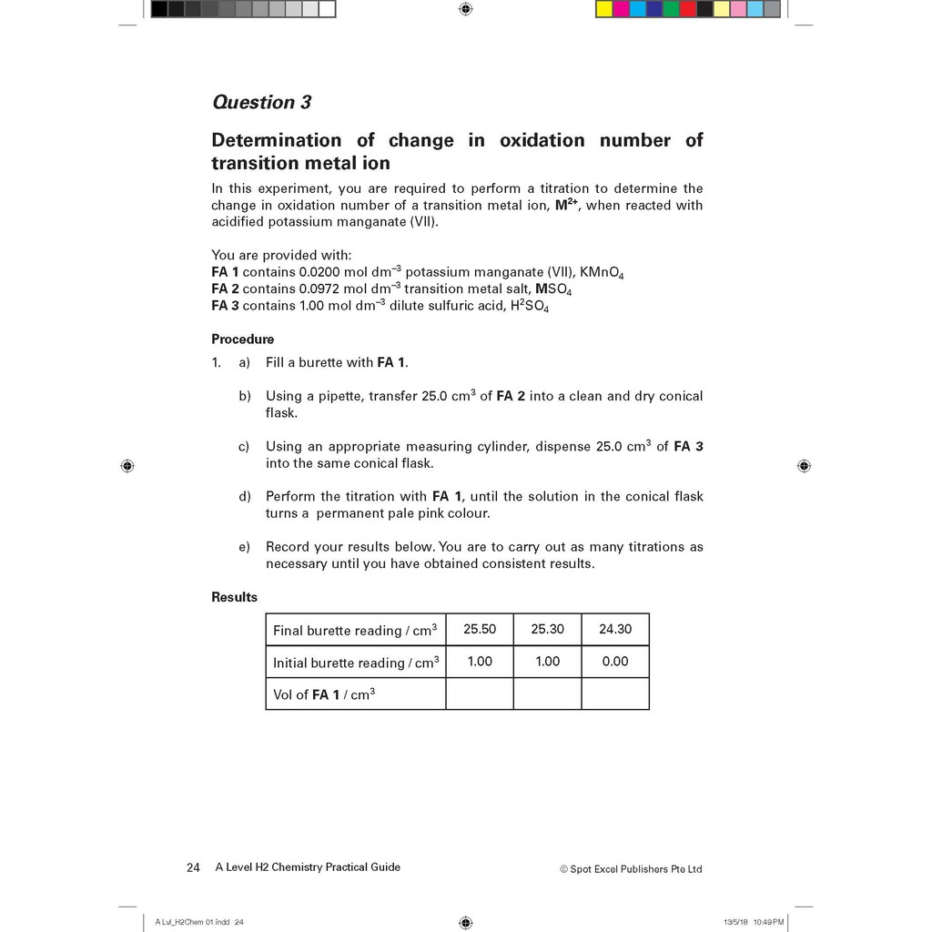 A-Level H2 Chemistry Practical Guide/Singapore Syllabus/Assessment Book