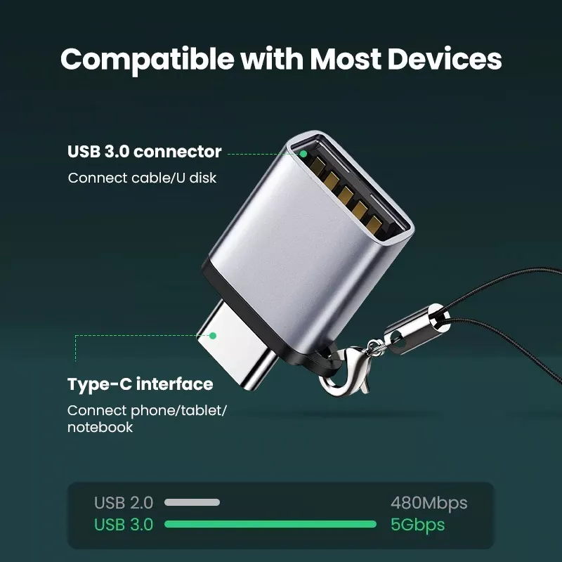 UGREEN TYPE-C USB-C TO USB 3.0 USB-A ADAPTER CABLE CONVERTER OTG FUNCTION WITH LANYARD & SUPPORT 5GBPS (UG-US270-50283)