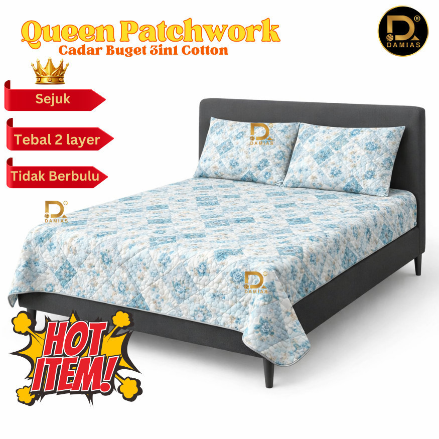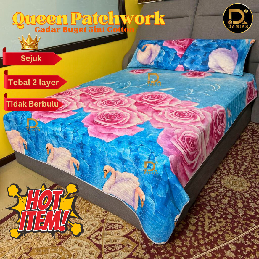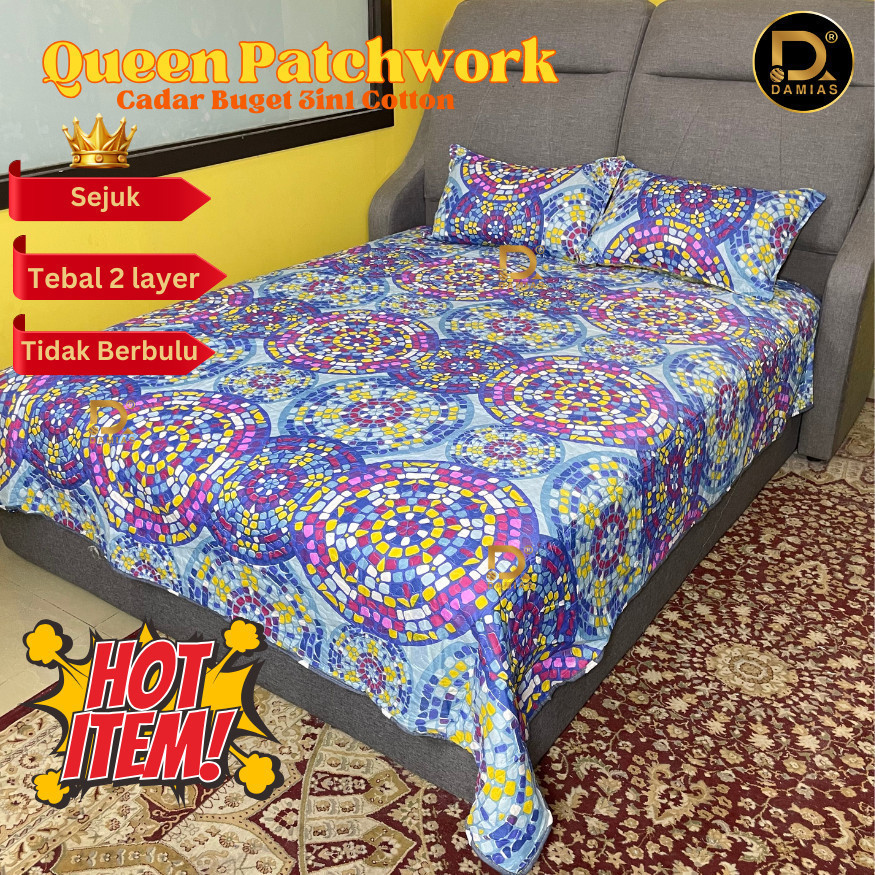 Cadar Bed Sheets Patchwork Set - Queen Size Quilt (3 in 1) (CADAR LELONG REJECT KILANG) Bedsheet Queen Size