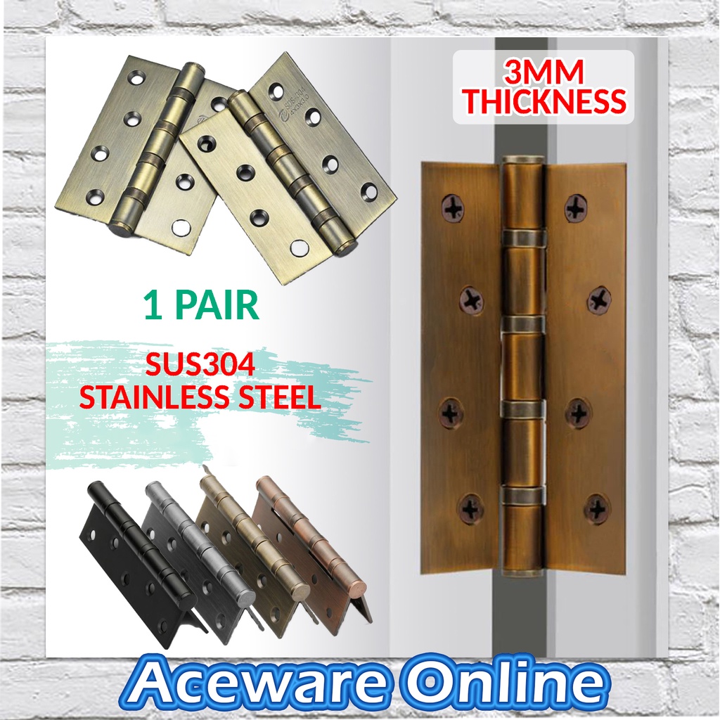 4” Heavy Duty SUS 304 Stainless Steel 3mm Thickness Door Hinges Bearing Hinges Latch (1 PAIR)