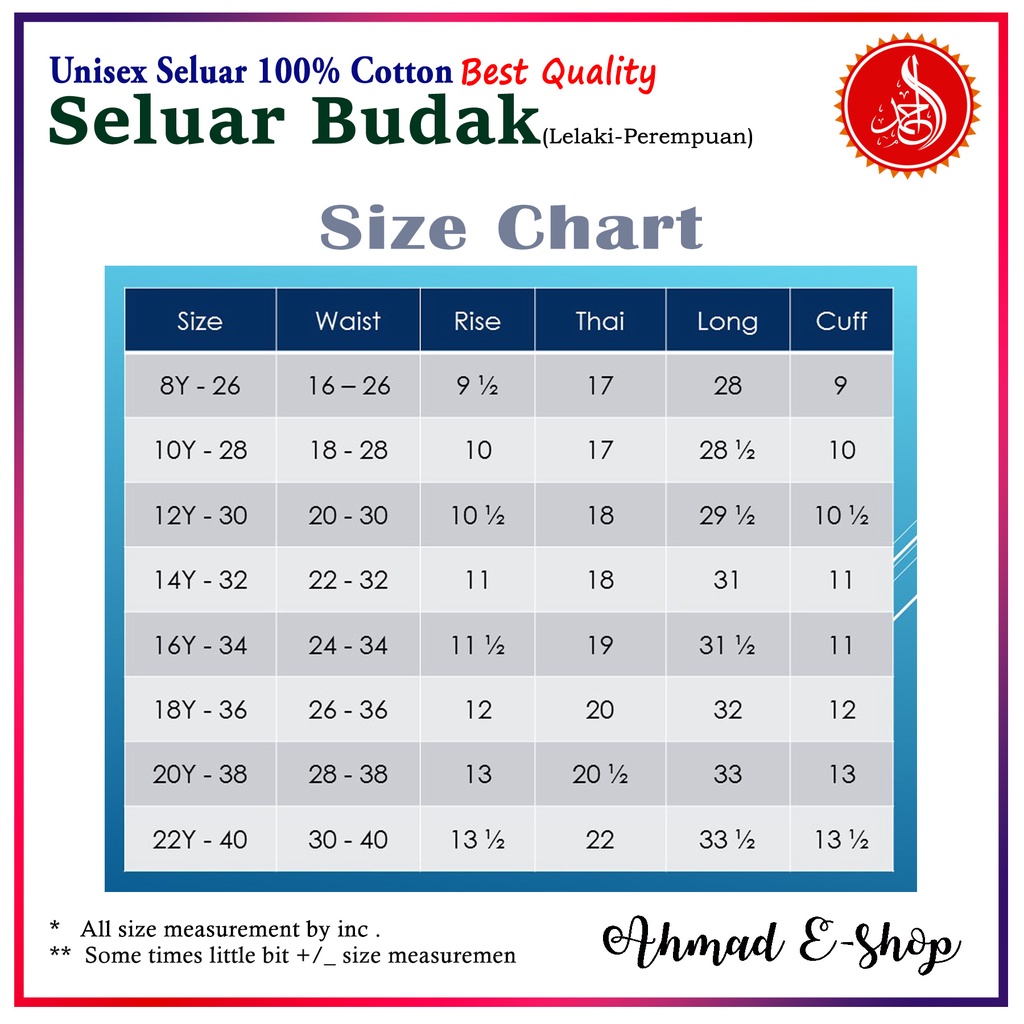 Seluar Budak/Adult Unisex (Tahfiz/Lelaki/Perempuan) 100% Cotton