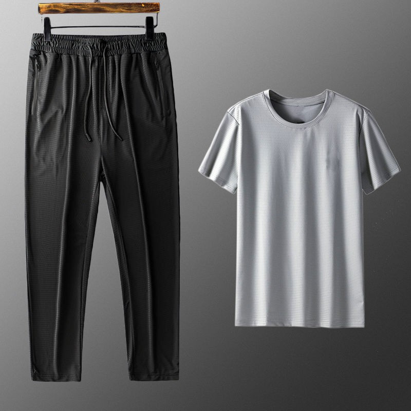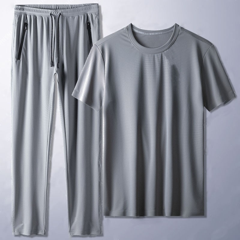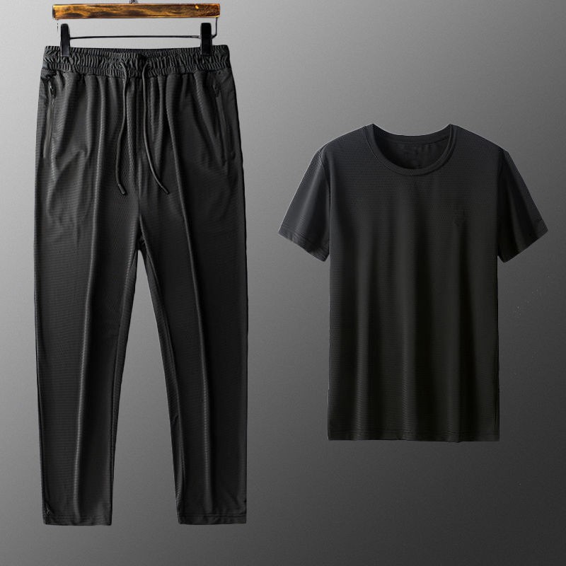 Ice Silk Men Pajamas Set Summer Breathable Short Sleeve TShirt +Pants 2 PCS Set Plus Size Sports Wear Men's Sleepwear Nightwear Casual Suits Homewear Lougewear Loose Pyjamas Set