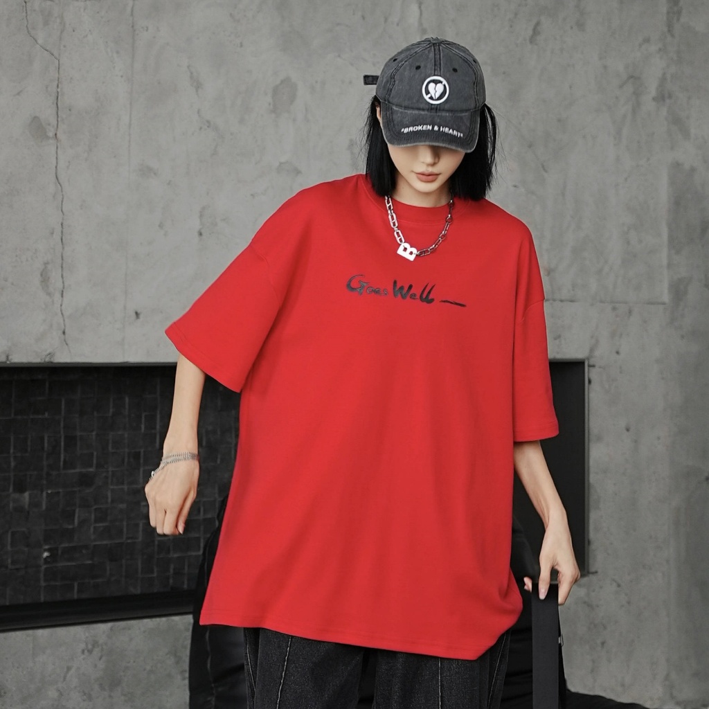 [ Sozo-one ] - Korean Streetwear 220 Grams Cotton Style Red T-Shirt Oversize Tee Casual Couple Wear SN12833