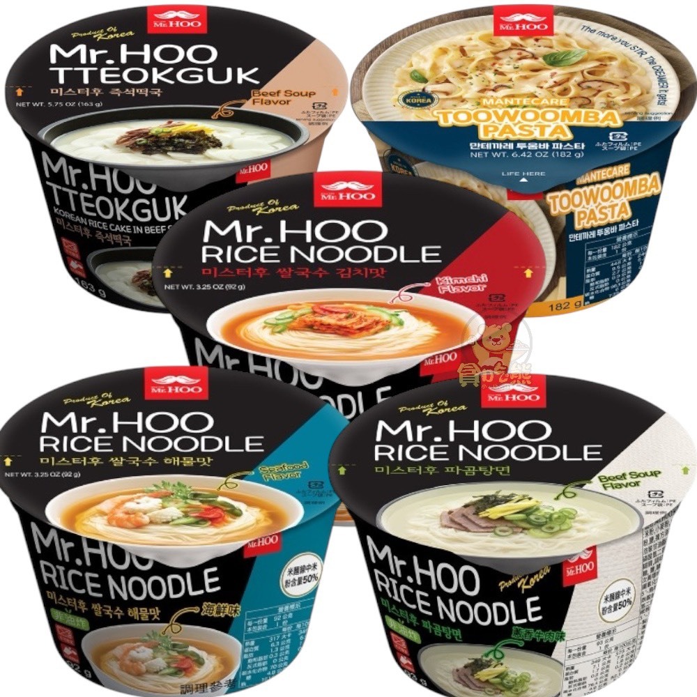 ** Gluttonous Bear * Korea Mr. Hoo Series Instant Noodle Bowl Rice Slightly Spicy White Sauce Pasta Cake Soup Scallion Fragrant Beef Flavor Seafood Kimchi