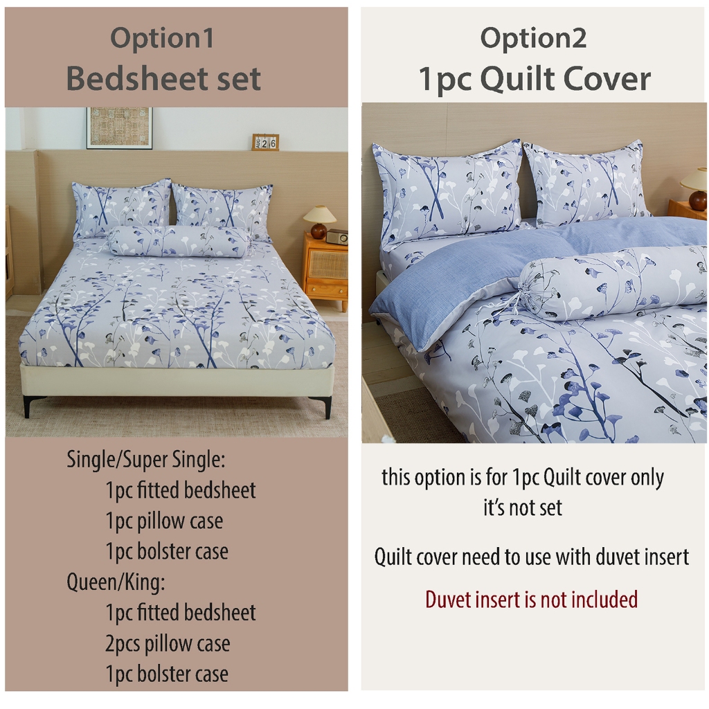 [V.home] Fitted Bedsheet set Bed Sheet Quilt Cover-for mattress up to 38cm/15inch thick