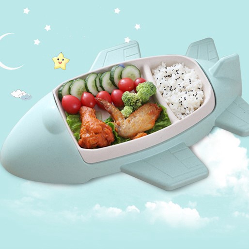 MILANDO Kid Children Bamboo Fiber Food Dish Tray Aeroplane Shaped Dinnerware Plate Set (Type 2: Aeroplane )