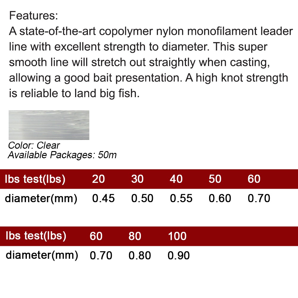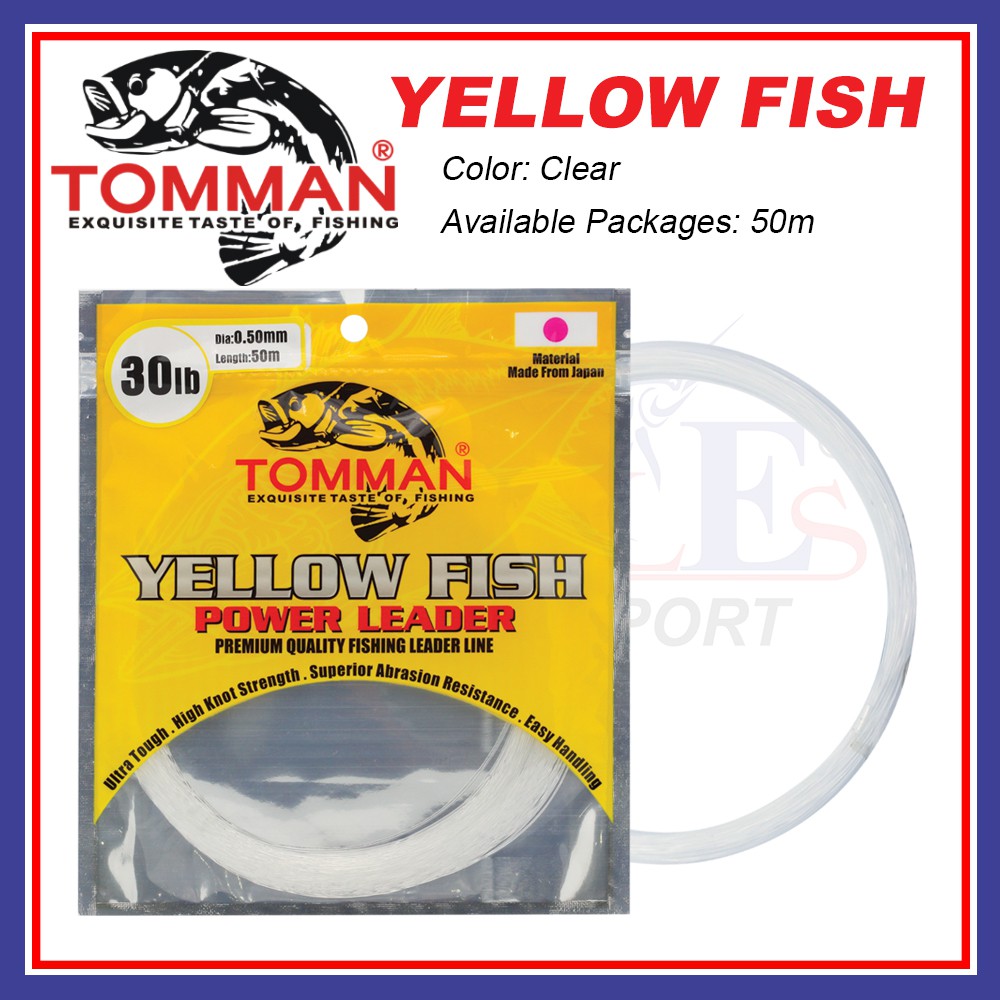 50M Tomman Yellow Fish Power Leader Fishing Line Leader Tali Pancing