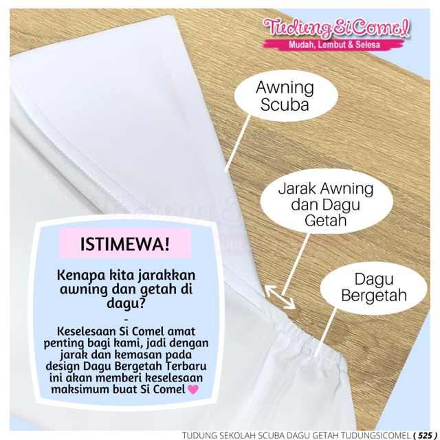 School Hijab with Elastic Chin by TudungSiComel Tudung Awning Scuba On Point School Tudung White and Color