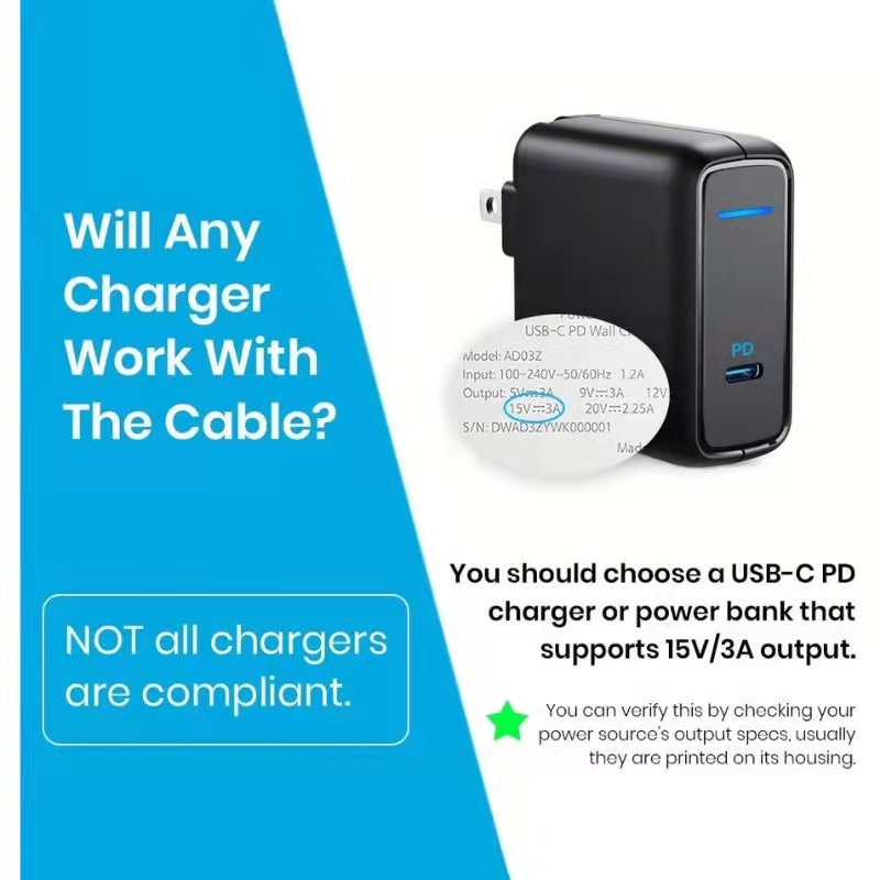 Microsoft Surface Pro 6 5 4 3 Tablet 1.5m 15V 3A USB Type-C USB C Charging Cable Cable Cord