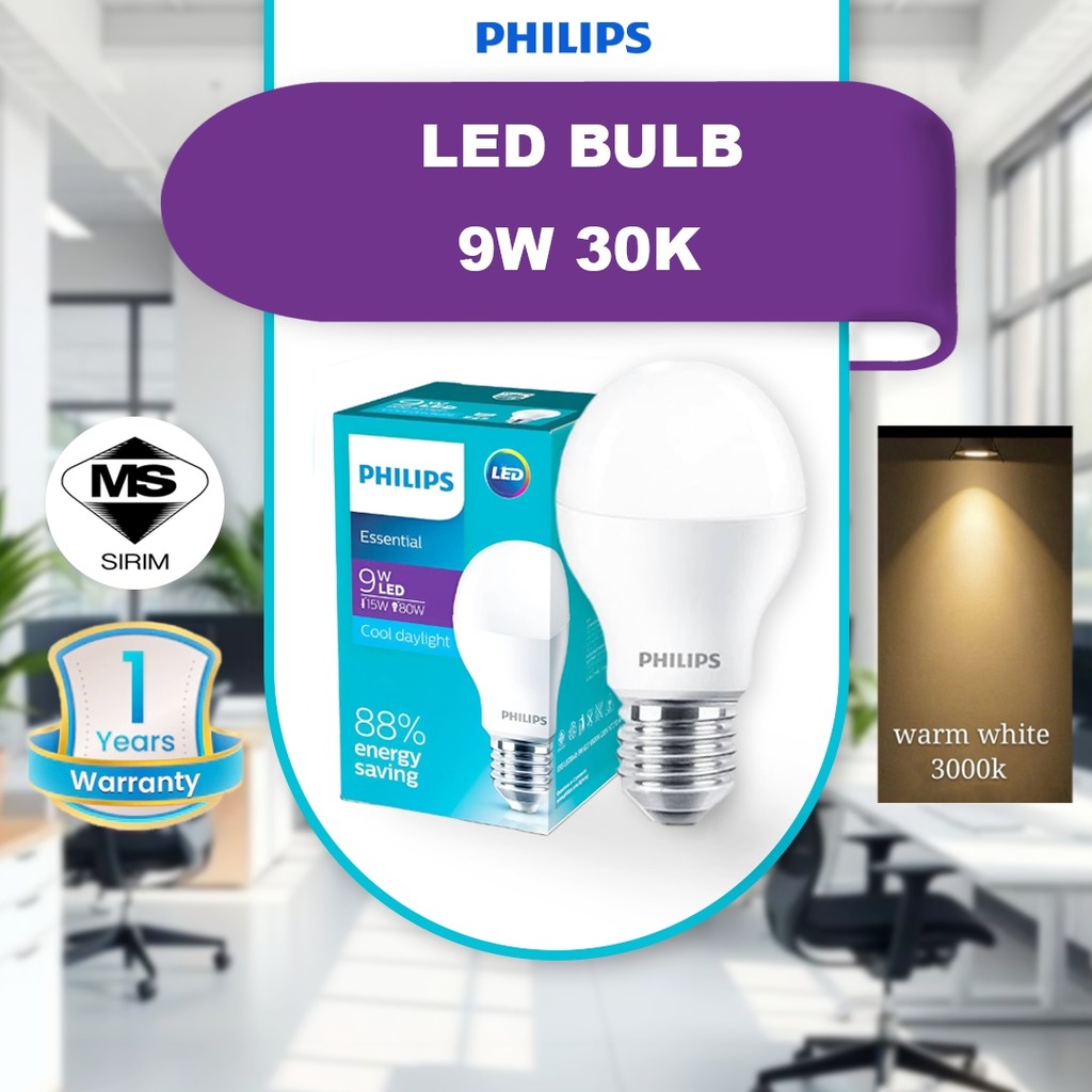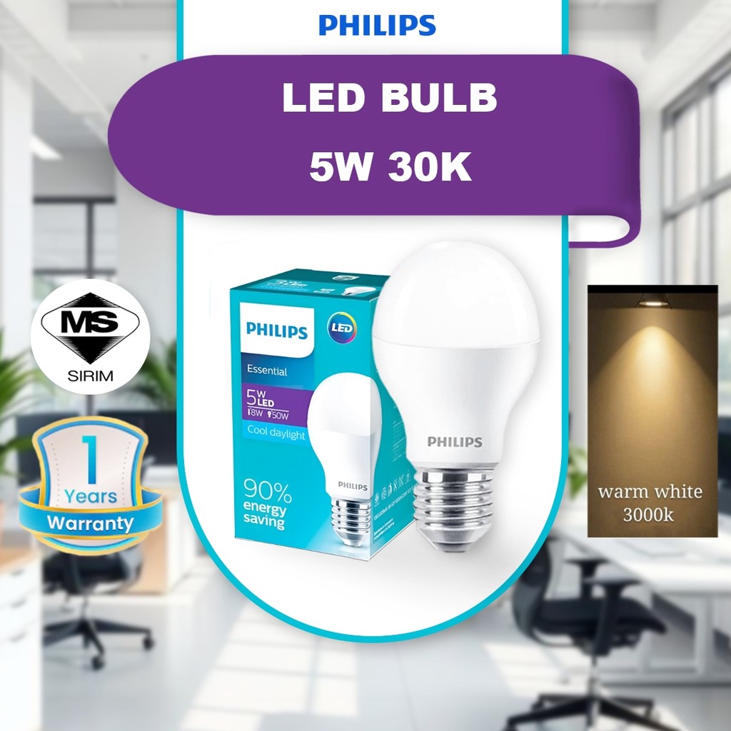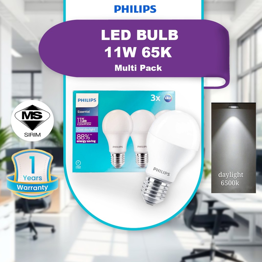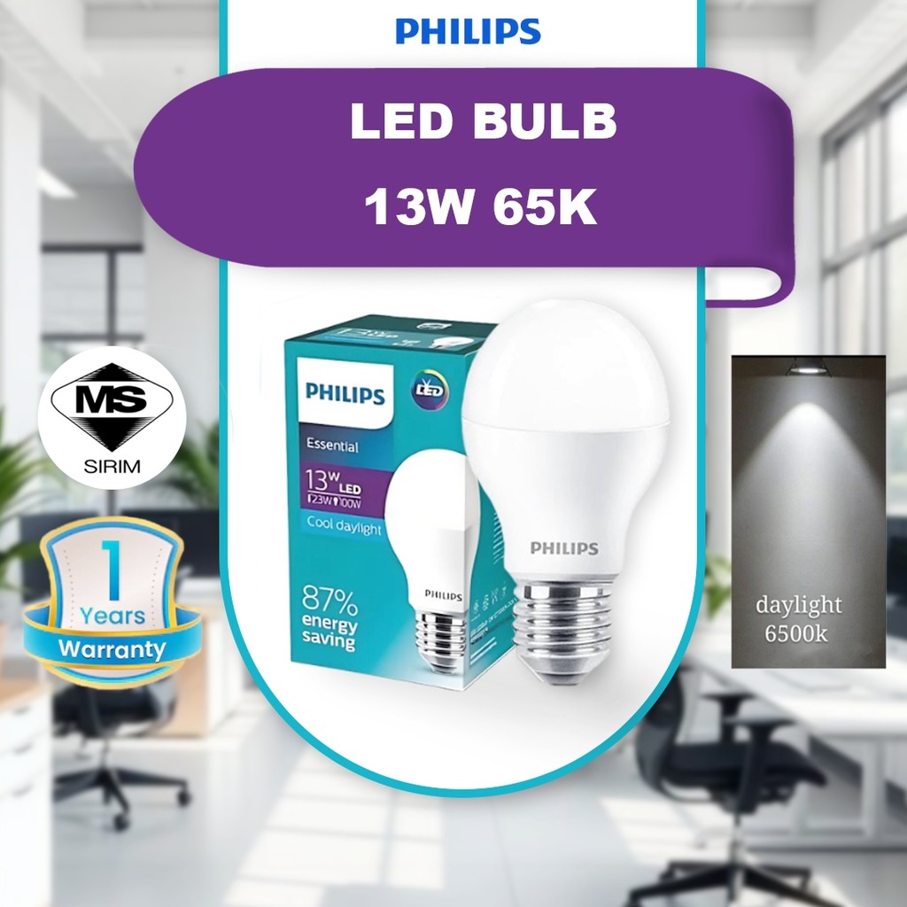 100% E27 Philips 5w/9w/11w/13w Essential E27 LED Bulb Mentol Lampu LED Mentol Lampu