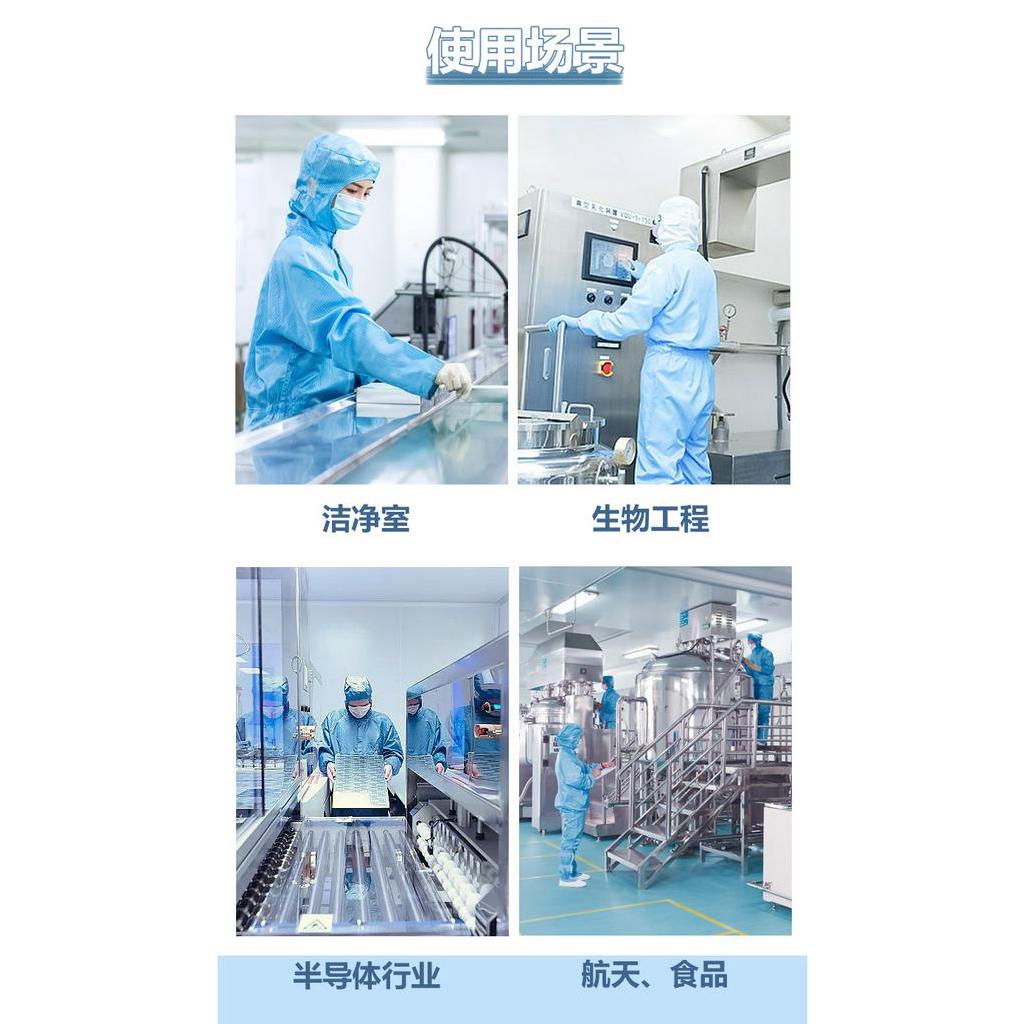 ESD Jumpsuit With Headcover Cleanroom Workwear Lab Uniform Round Neck Stripe Zip Type Unisex White/Skyblue/DarkGreen