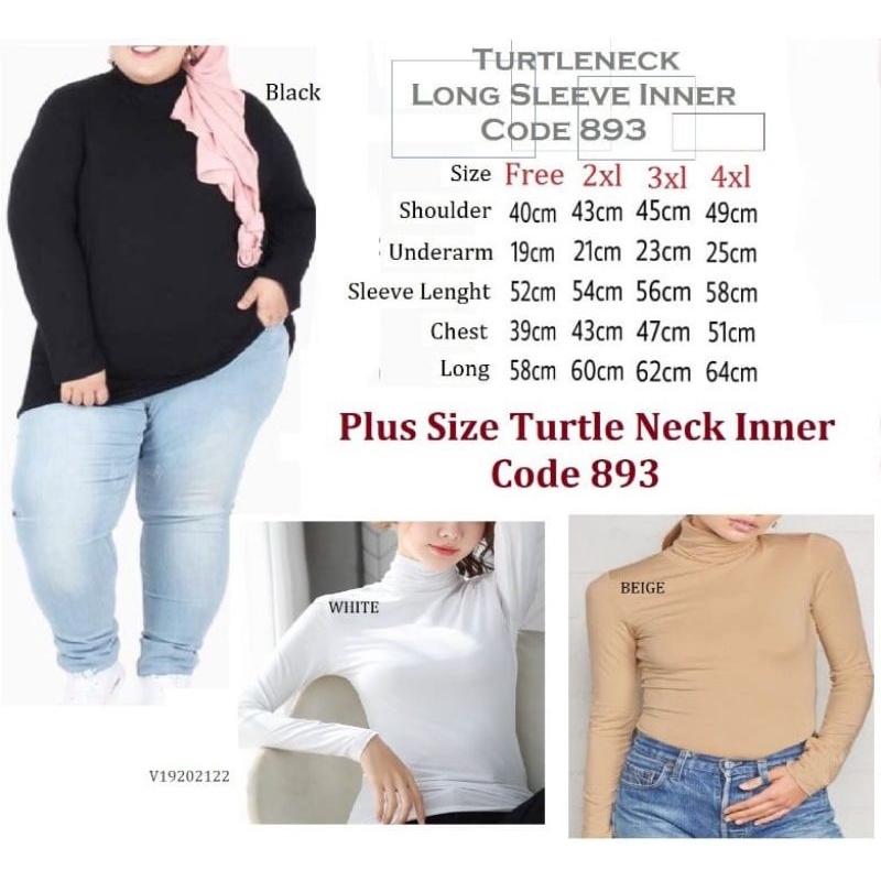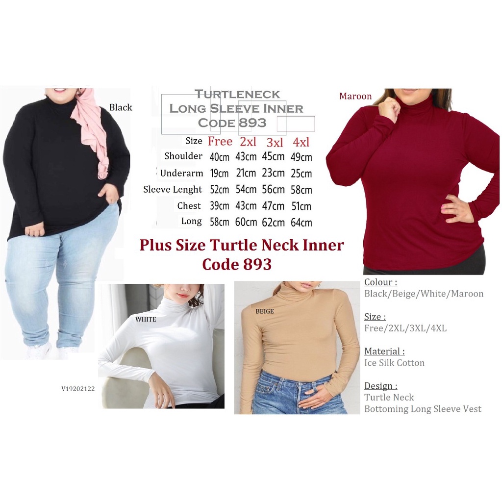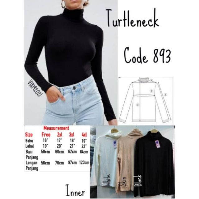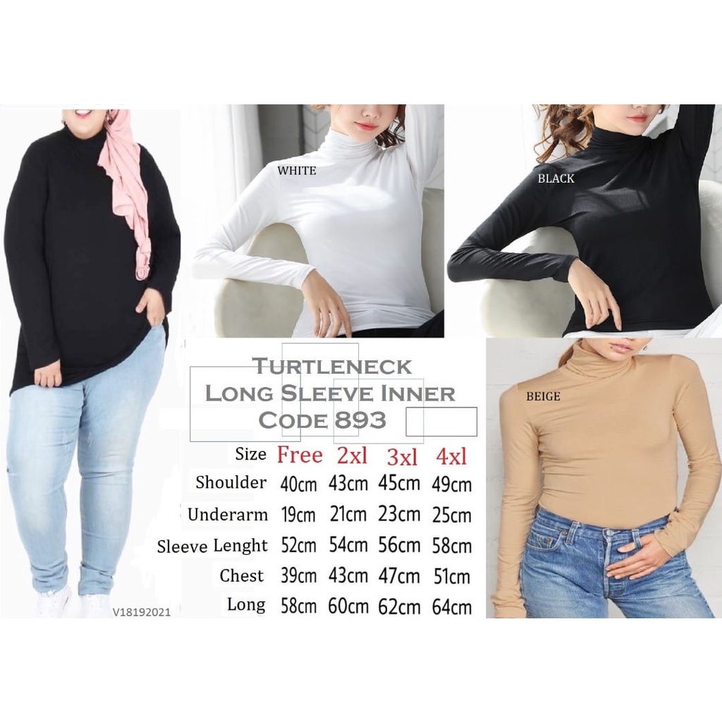 Inner Muslimah Turtleneck Long Sleeve Cotton - Black/White/Skin/Maroon (S-4Xl)