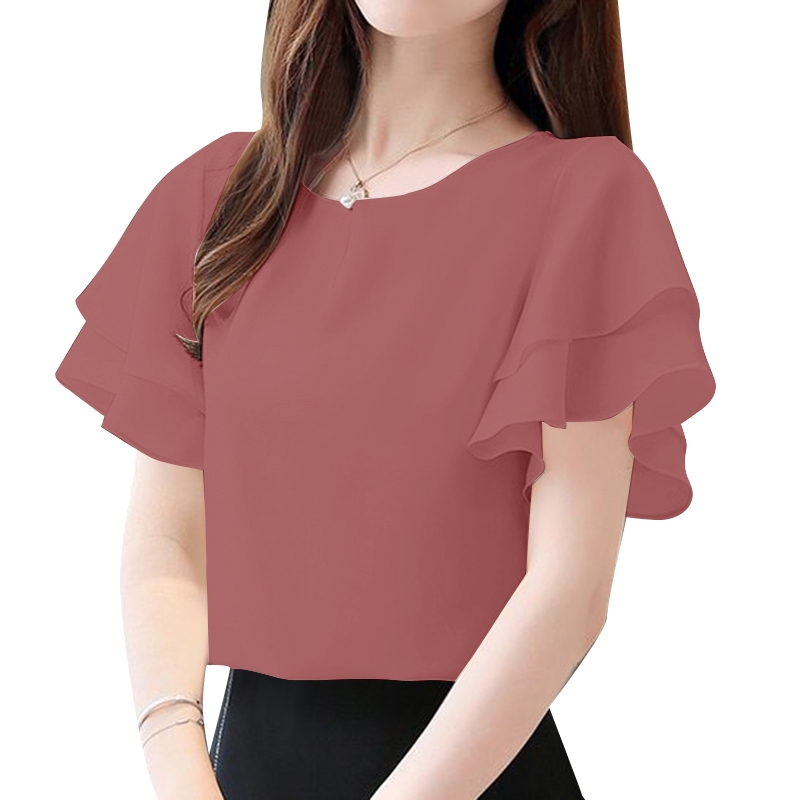 ZANZEA Women Korean O-Neck Button Double Layer Ruffle Short Sleeve Blouses