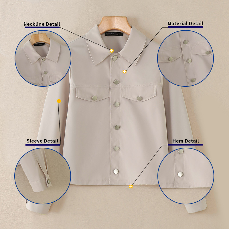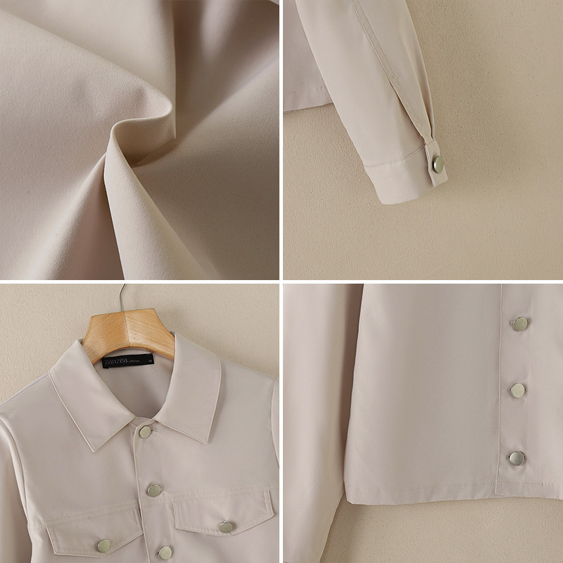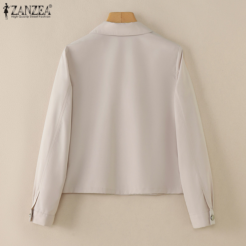 ZANZEA Women Vintage Casual Turn-Down-Collar Long-Sleeved Pocket Jackets