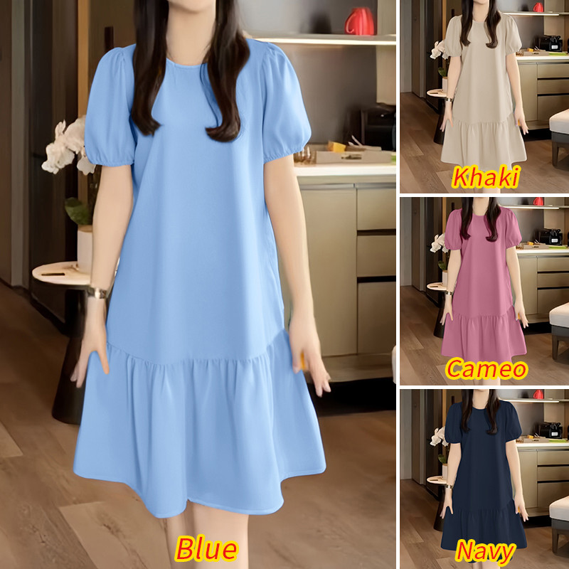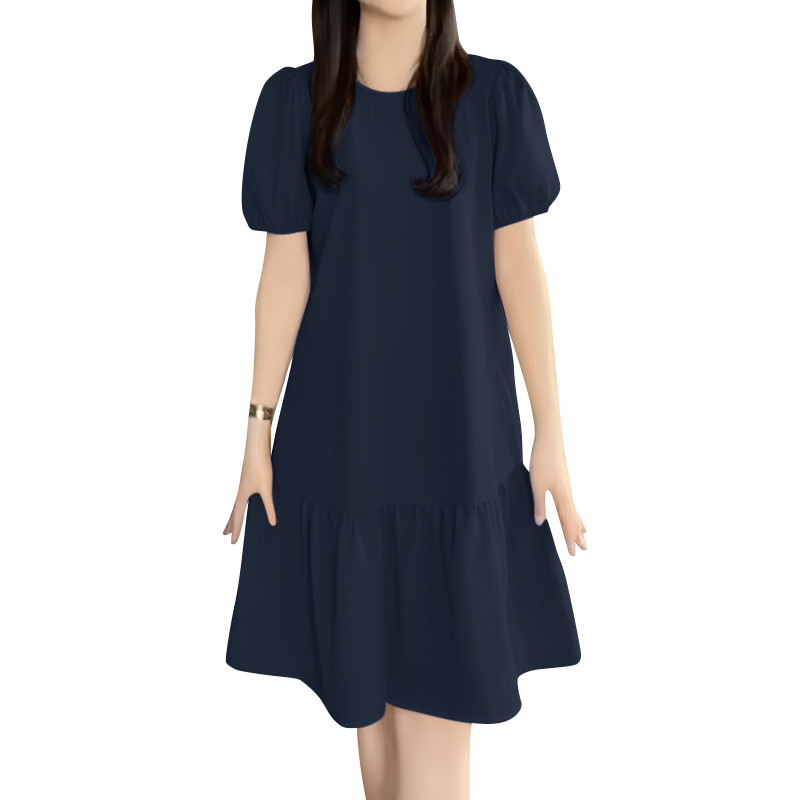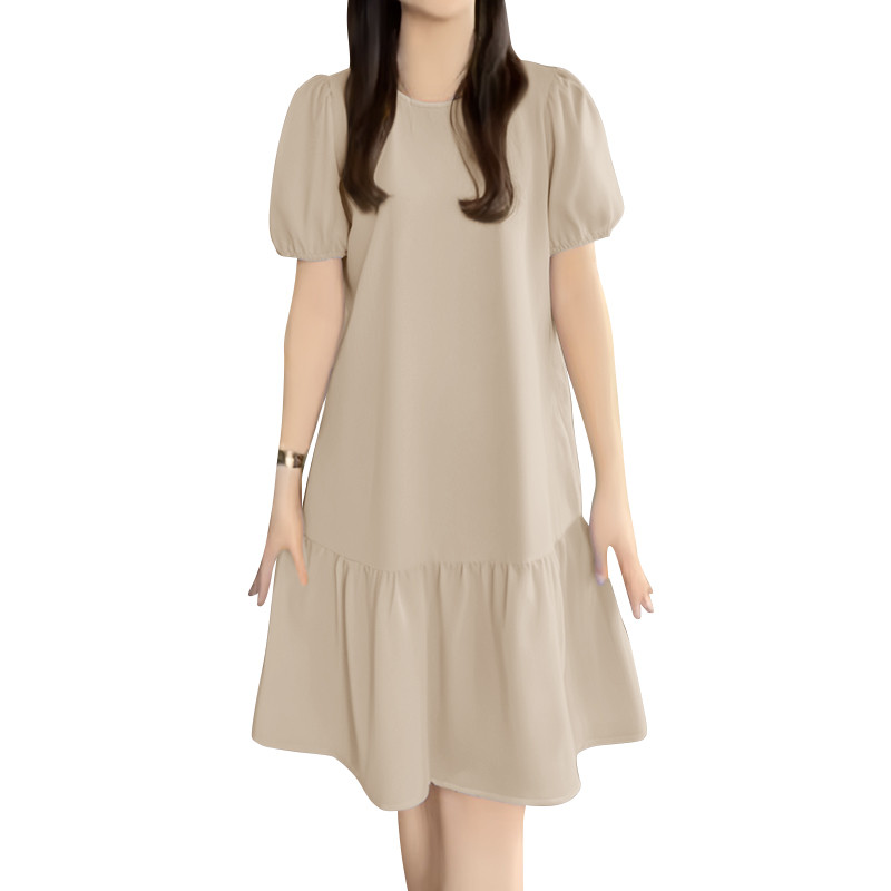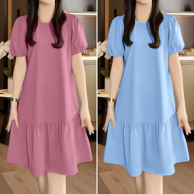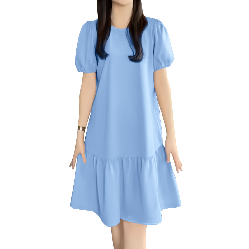 ZANZEA Women Korean Leisure Short Sleeve Puff Sleeve Vacation Lotus Fish Tail Dress