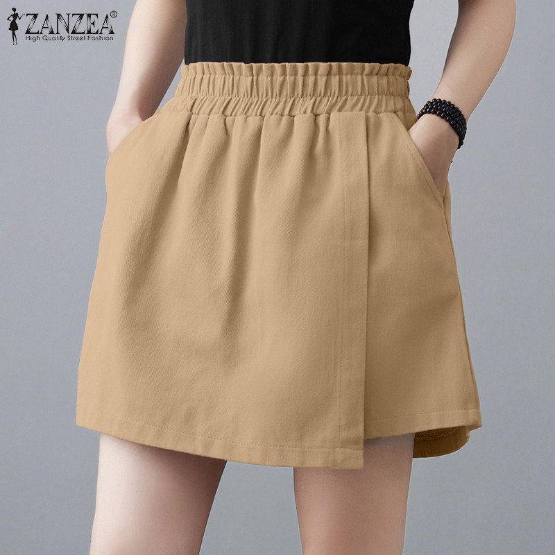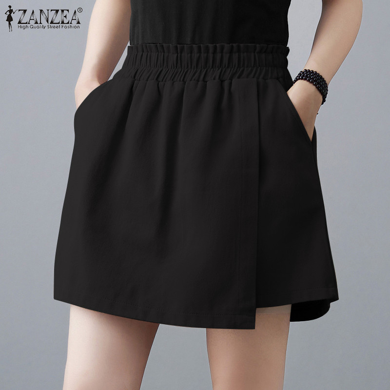 ZANZEA Women Fashion Pure color Casual Elastic Waist With Side Pockets Loose Shorts