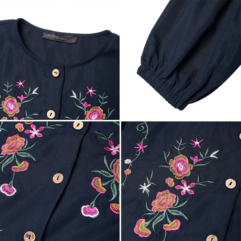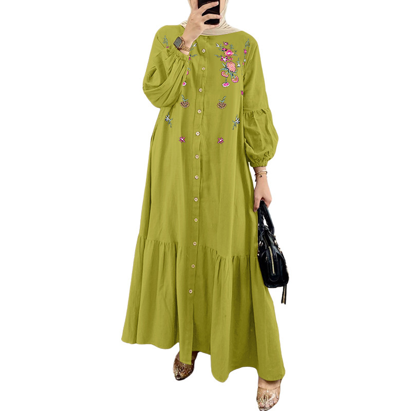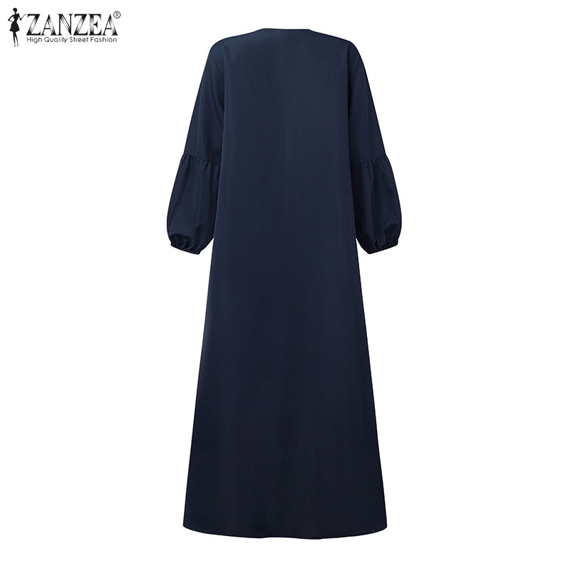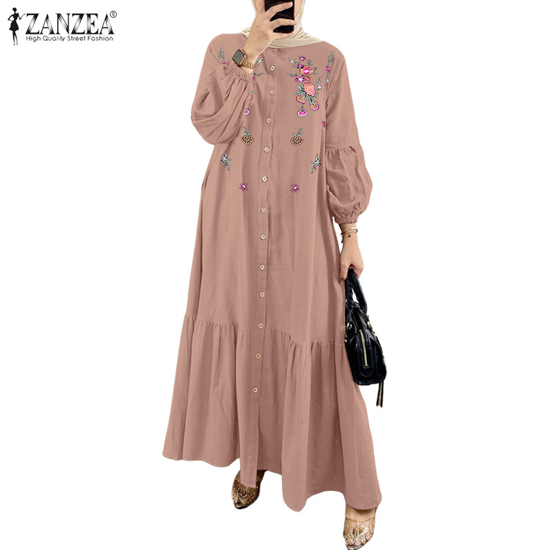 ZANZEA Women's Muslim Loose Embroidery 3/4 Lantern Sleeve Long Dresses