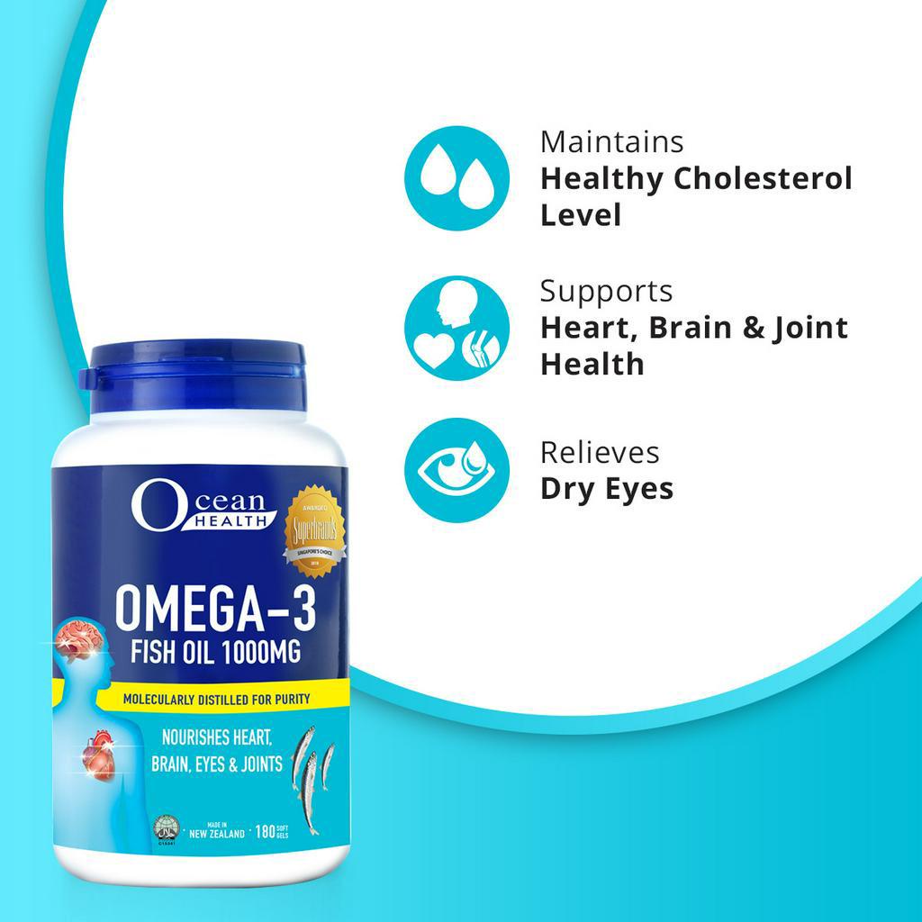 Omega-3 Fish Oil 1000mg (180s)- Ocean Health (For Heart, Brain, Eyes & Joints| Halal)