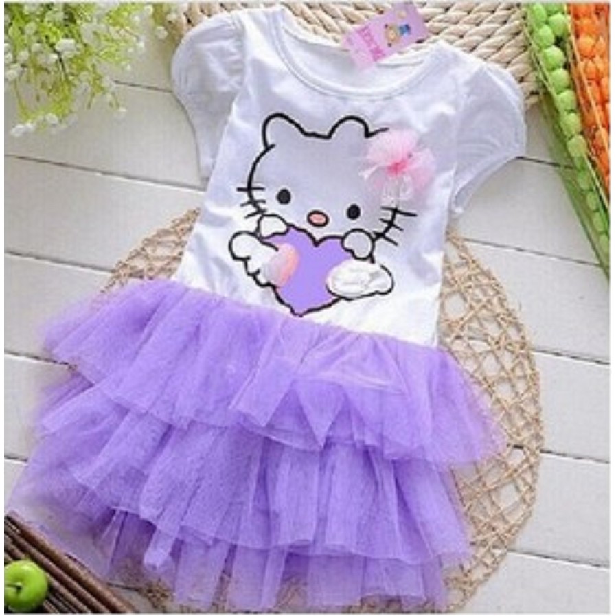 C003 - Girls summer dress cartoon Hello Kitty print dress Princess dress Kids Girl clothing fashion
