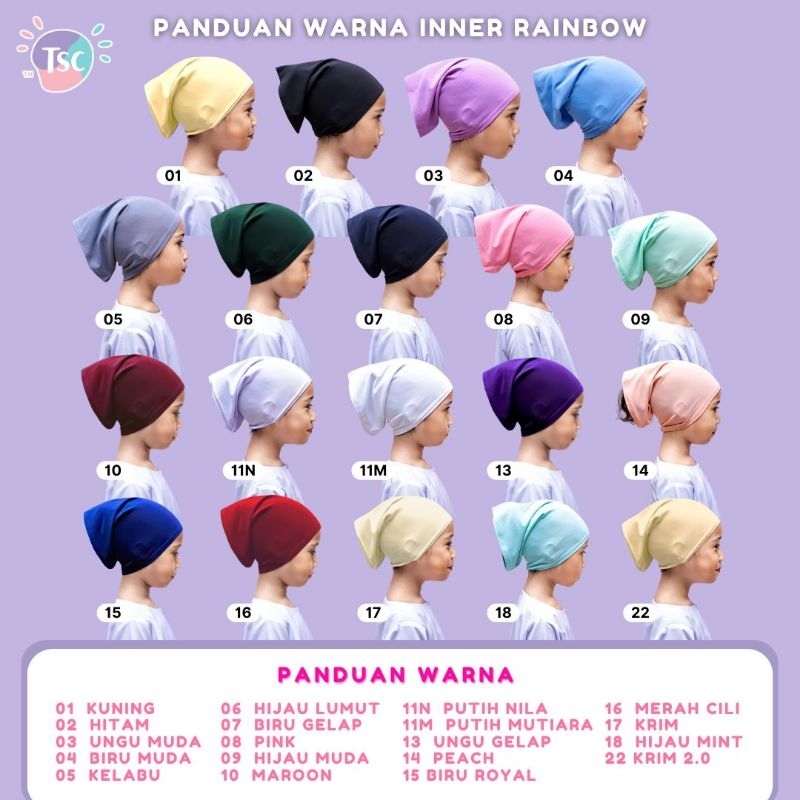 TudungSiComel Inner Headscarf Rainbow Kids Children's Headscarf