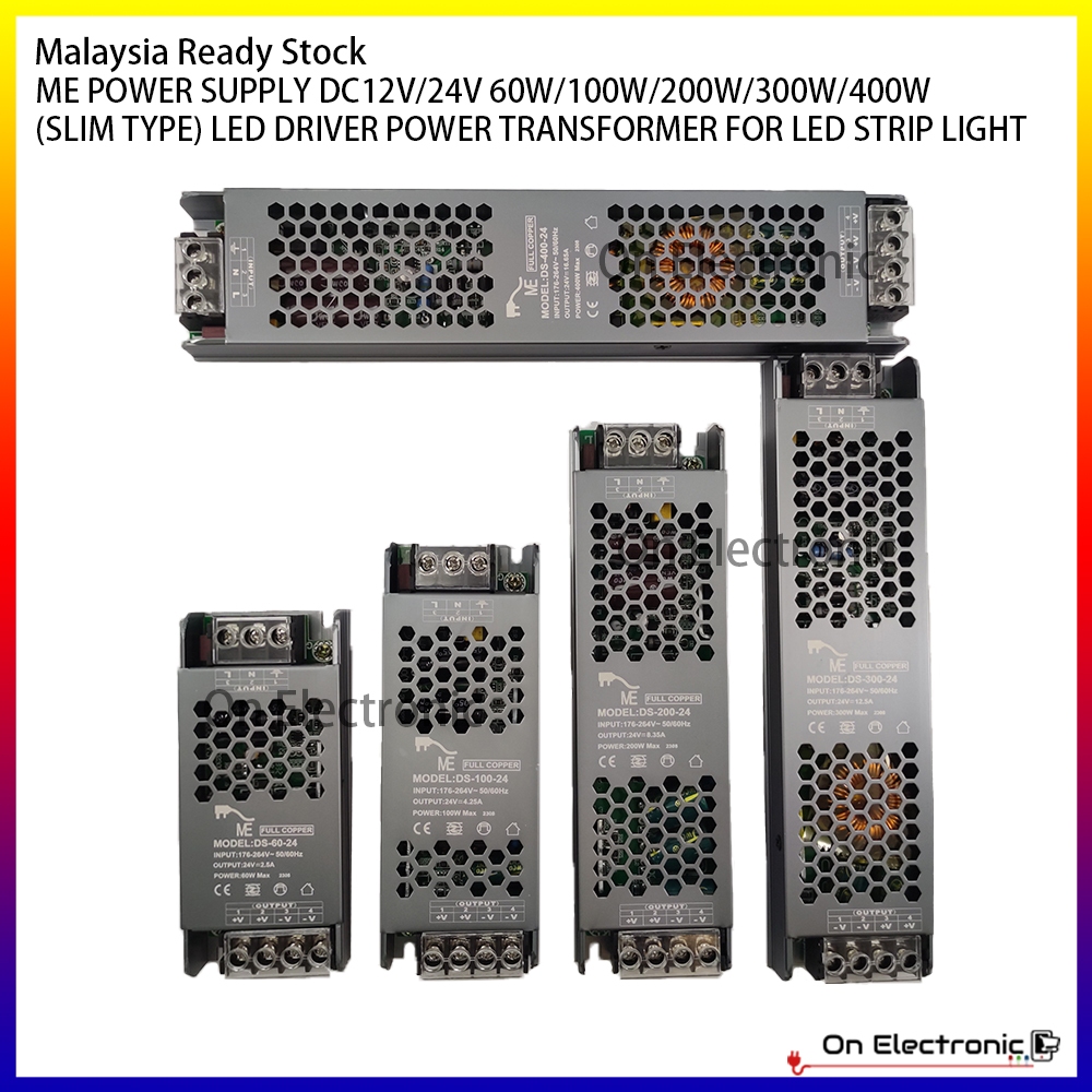 ME POWER SUPPLY DC12V/24V 60W/100W/200W/300W/400W (SLIM TYPE) LED DRIVER POWER TRANSFORMER FOR LED STRIP LIGHt