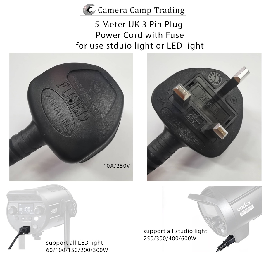 5 meters Power Cord Cable Wire 3 PIN Plug for Flash Light & Video Light LED