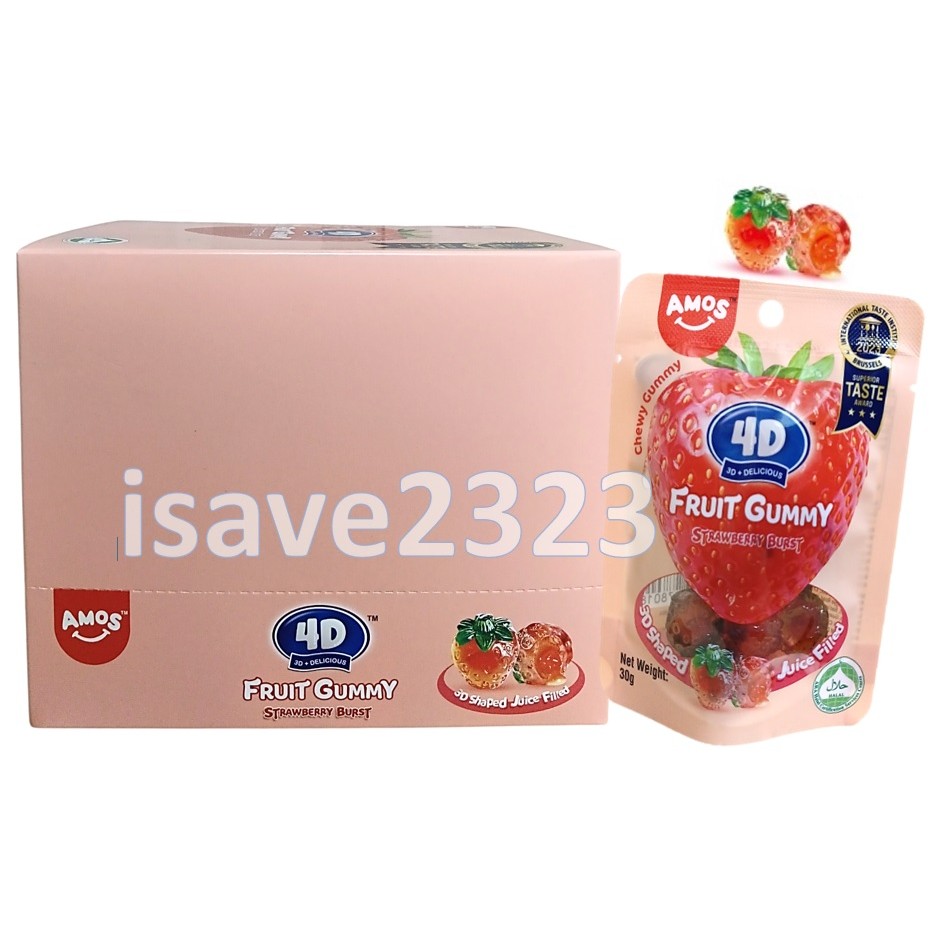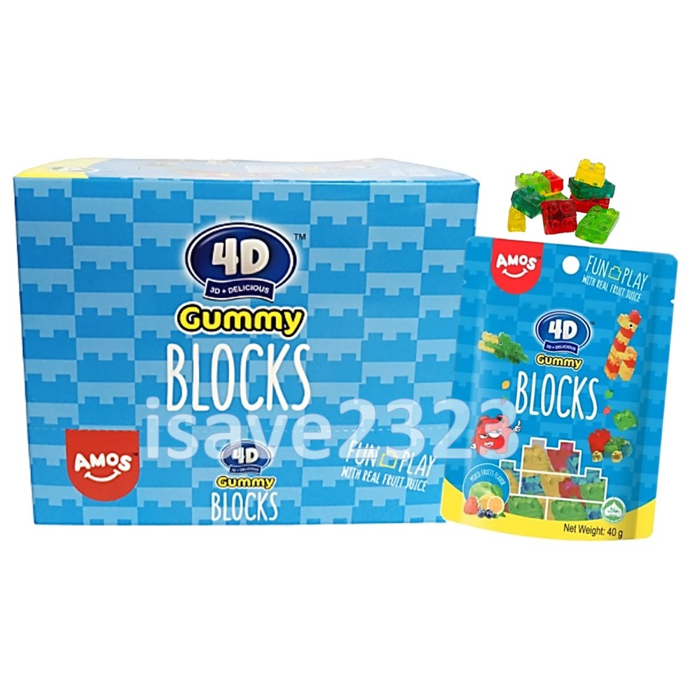 [HALAL] Amos 4D Gummy Candy (30g - 40g / 12 Pouches) - Fruits Mix / Blocks / Peach / Strawberry