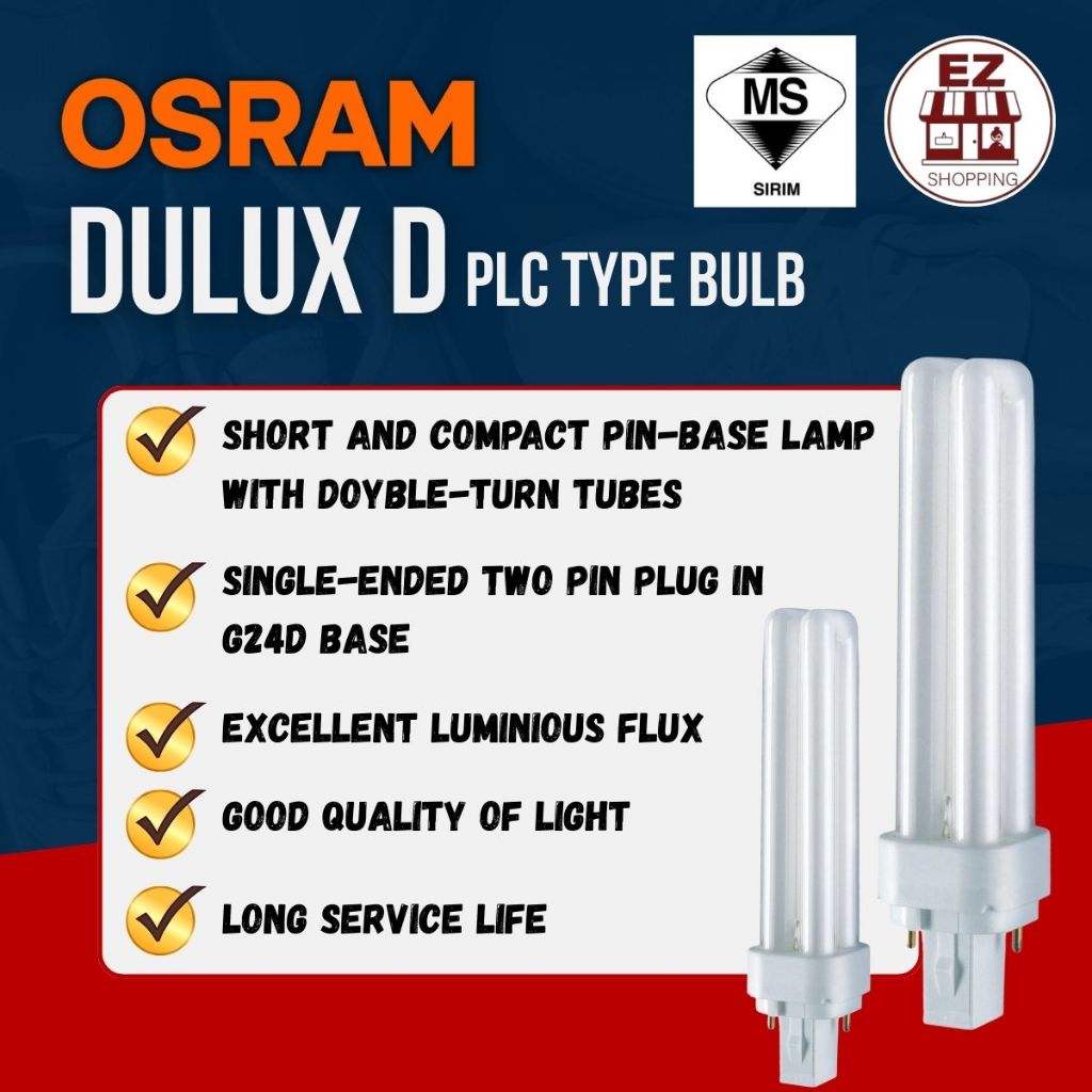 OSRAM DULUX D PLC TYPE BULB 18W 2PIN DAYLIGHT/COOL WHITE/WARM WHITE 日光、冷白、暖灯
