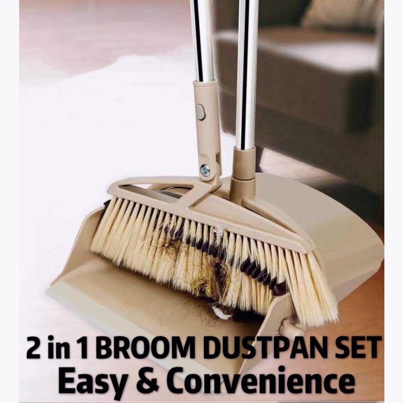 [LOCAL SELLER] Home Kitchen Office Floor Broom Foldable Broom Dustpan Set 2 in 1 Sweeping Tools Self-Cleaning Dustpan