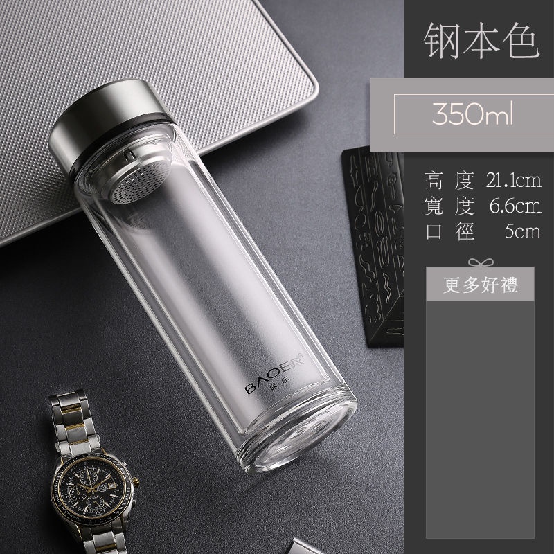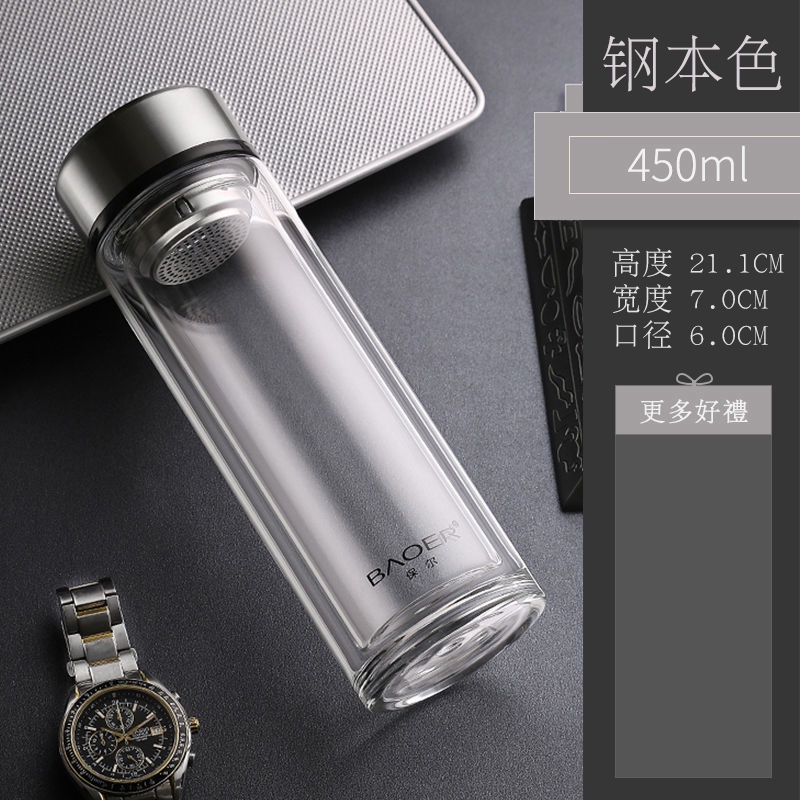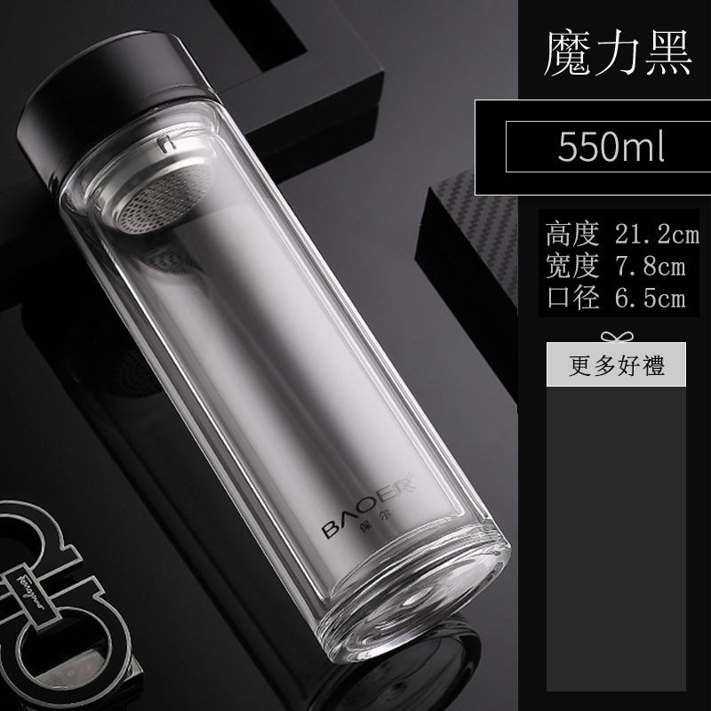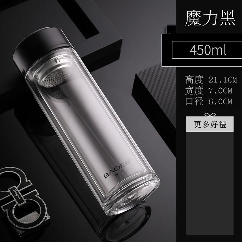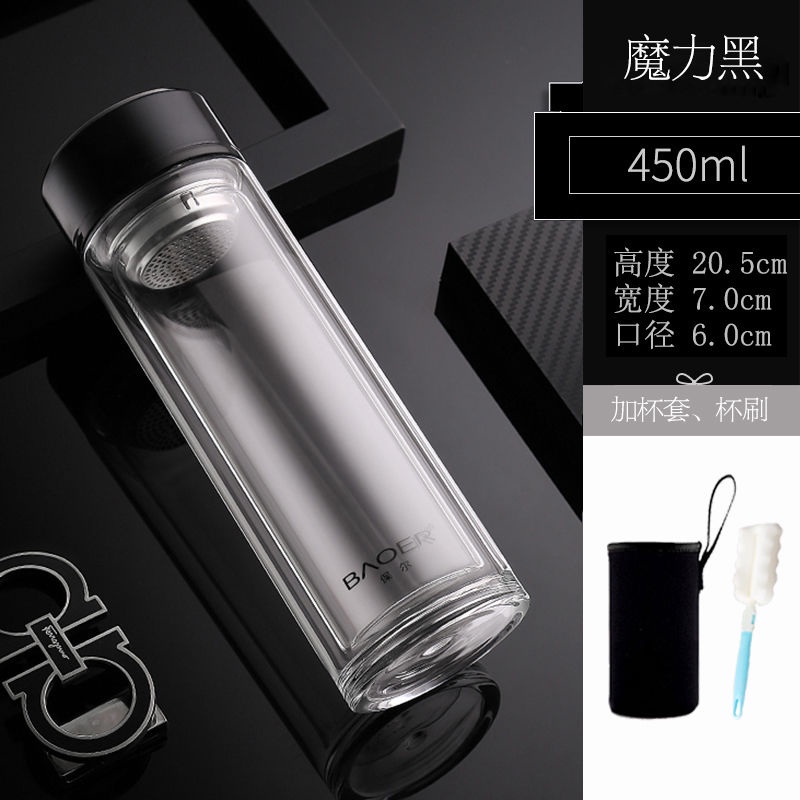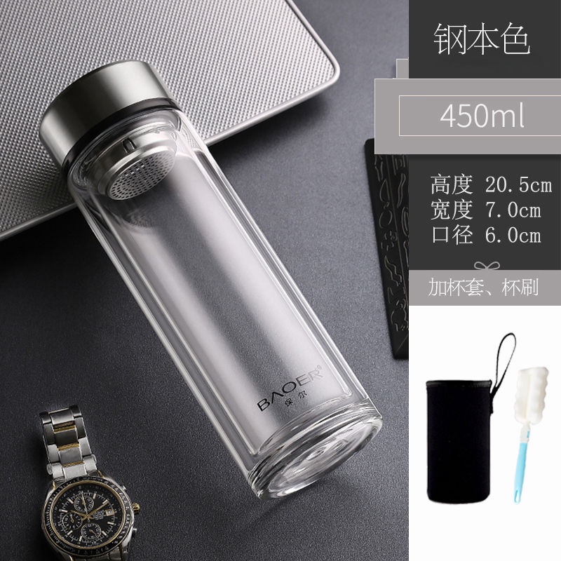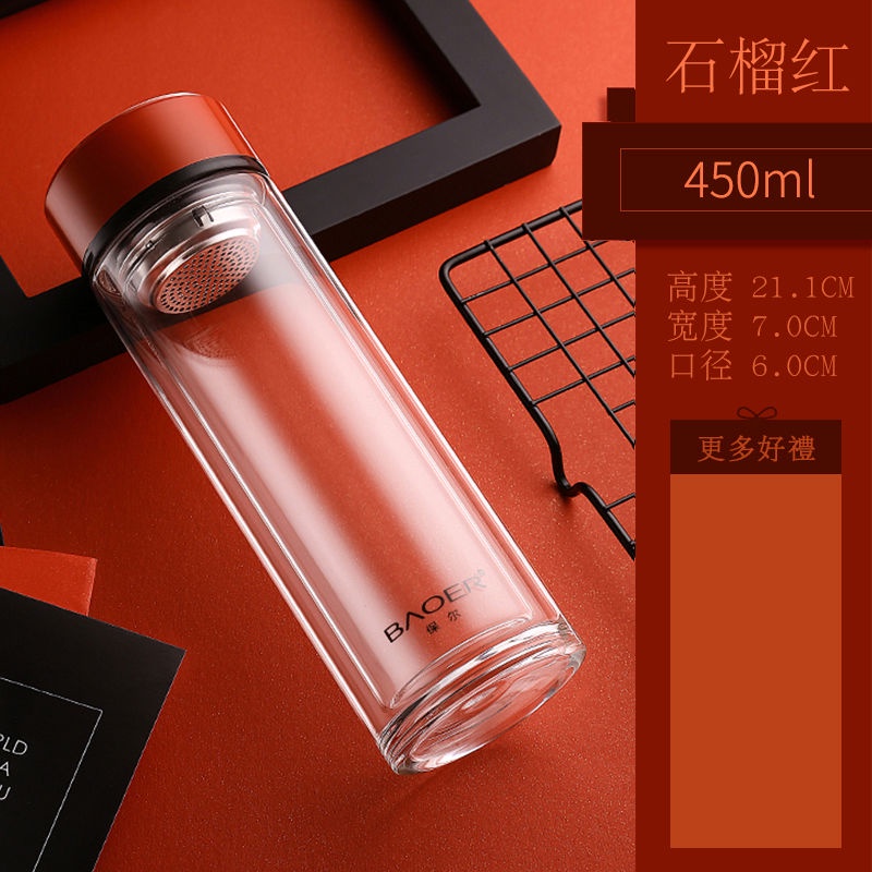 Double Layer Glass Cup Unisex Thickened Portable with Cover Heat Insulation Water Cup Filter Screen Home Tea Brewing Cup/Office glass with lid