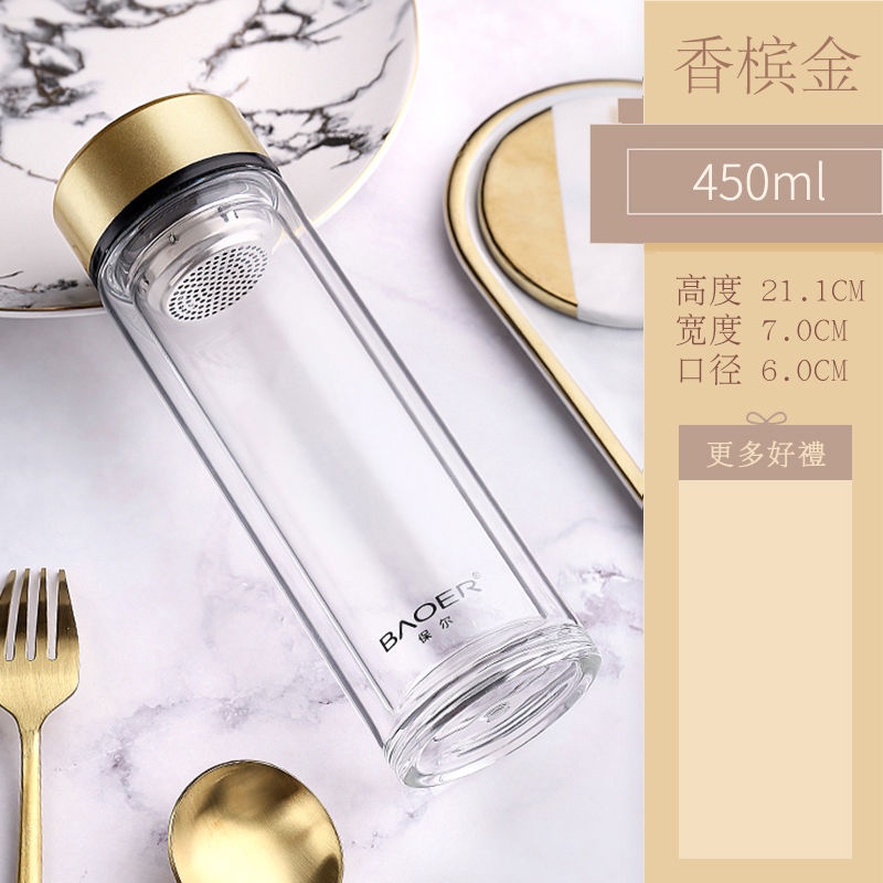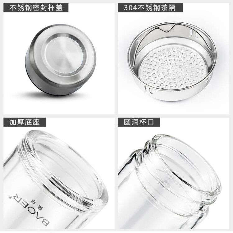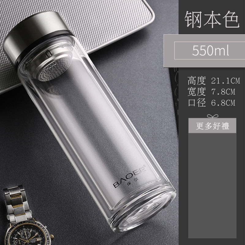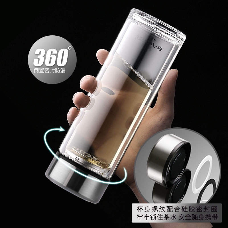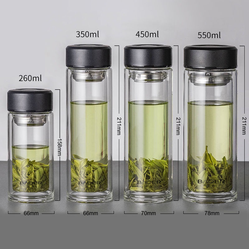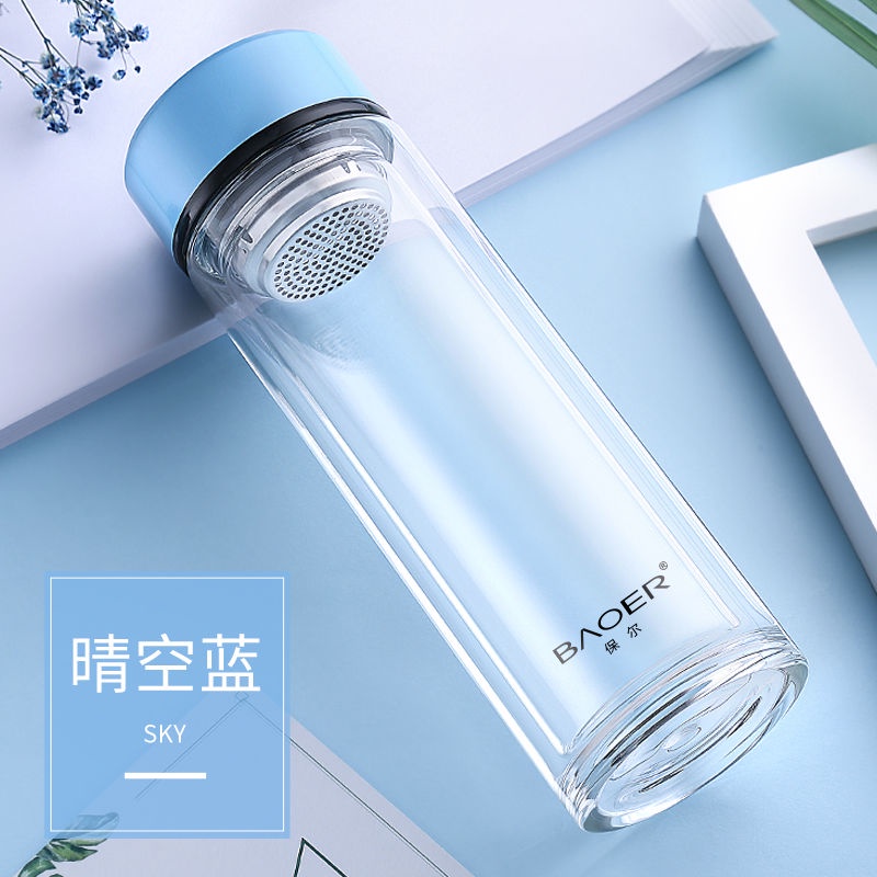 Double Layer Glass Cup Unisex Thickened Portable with Cover Heat Insulation Water Cup Filter Screen Home Tea Brewing Cup/Office glass with lid