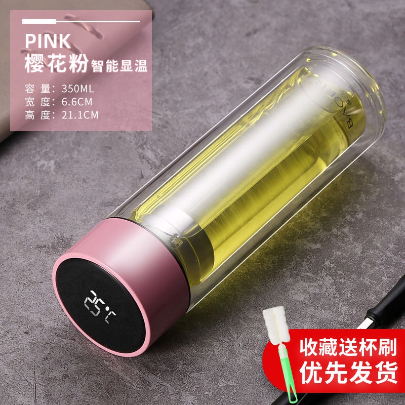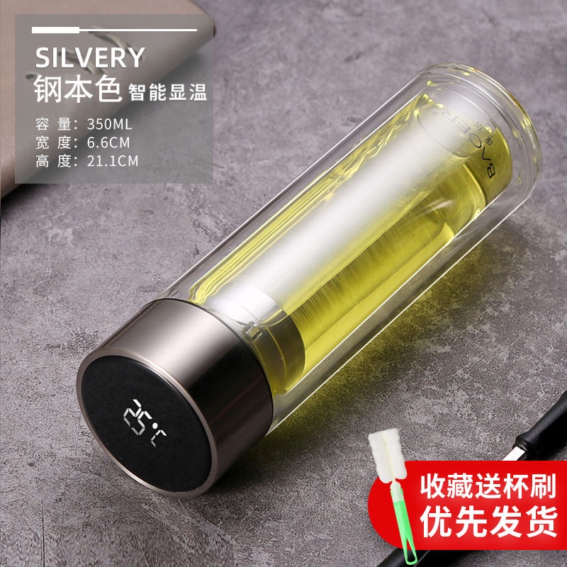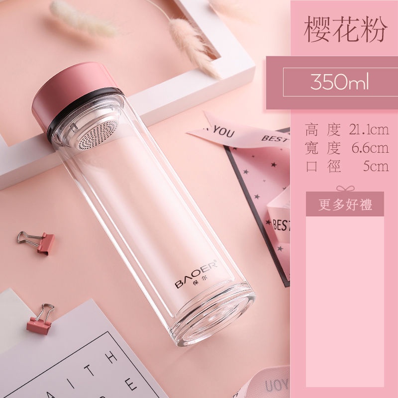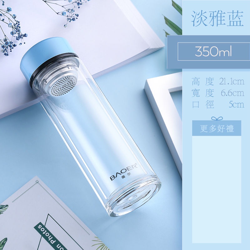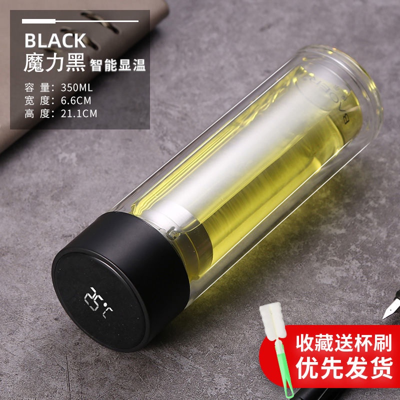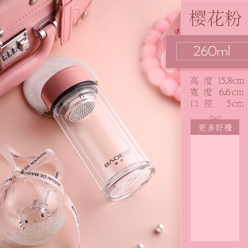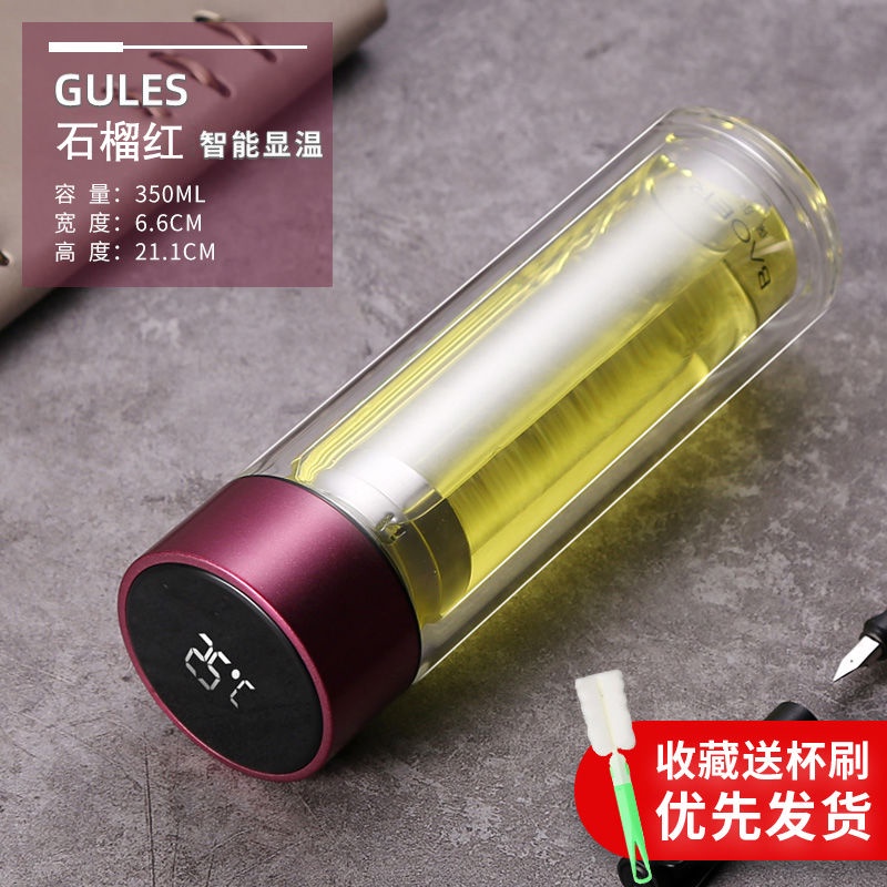 Double Layer Glass Cup Unisex Thickened Portable with Cover Heat Insulation Water Cup Filter Screen Home Tea Brewing Cup/Office glass with lid