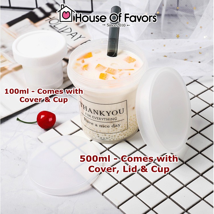 5pc/set 500ml Ice Cream Plastic Container Cup Pudding Yogurt Boba Milk Tea Cup Plastic Bekas Cookies