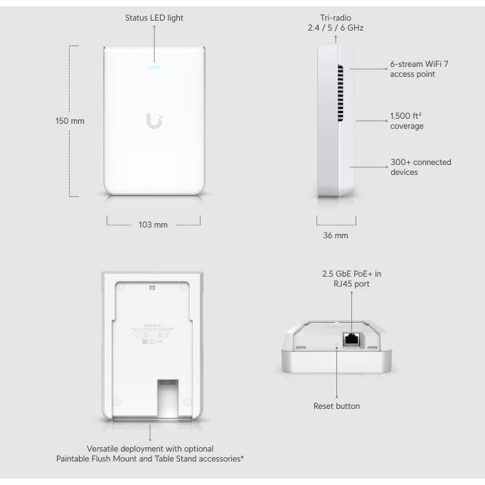 Ubiquiti Networks UniFi U7 Pro Wall WiFi 7 Access Point with 6 GHz support - (1 Year Singapore Distributor Warranty)