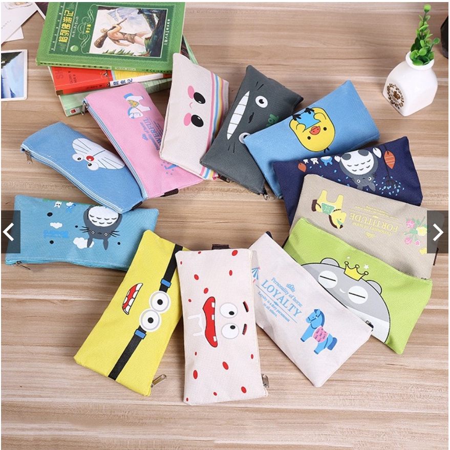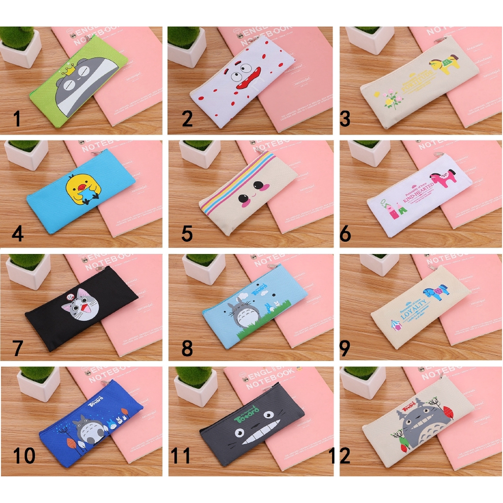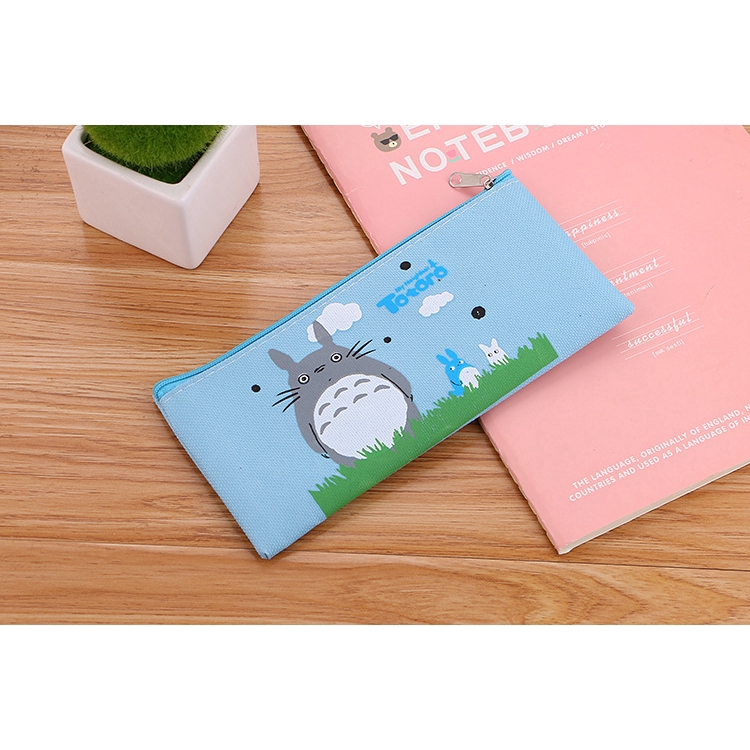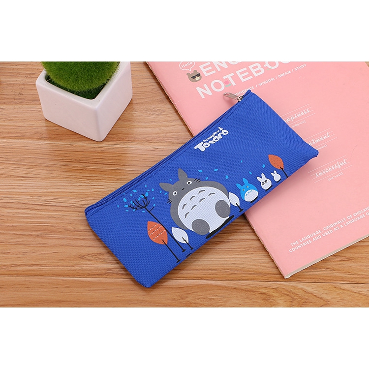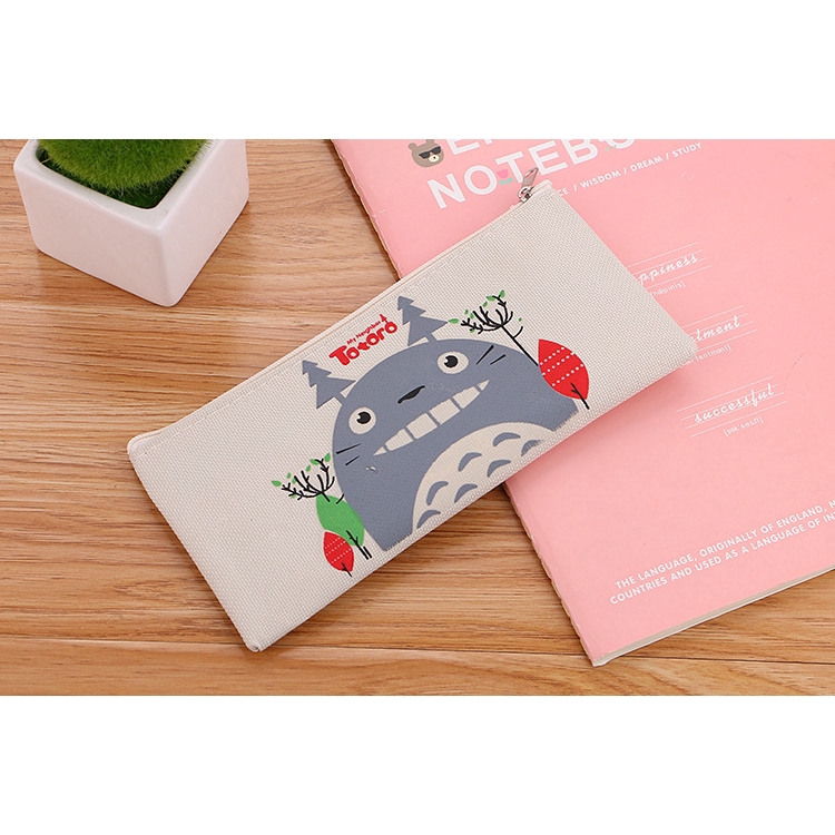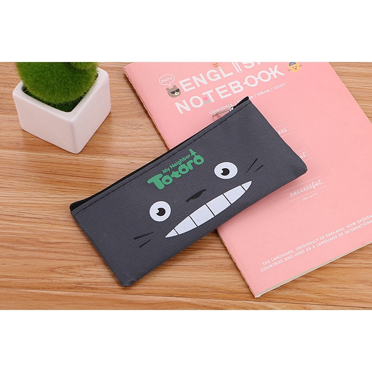 SG Korean Simple Cute Cartoon Canvas Pencil Case Zipper Stationery Bag Student Totoro Pencil Bag