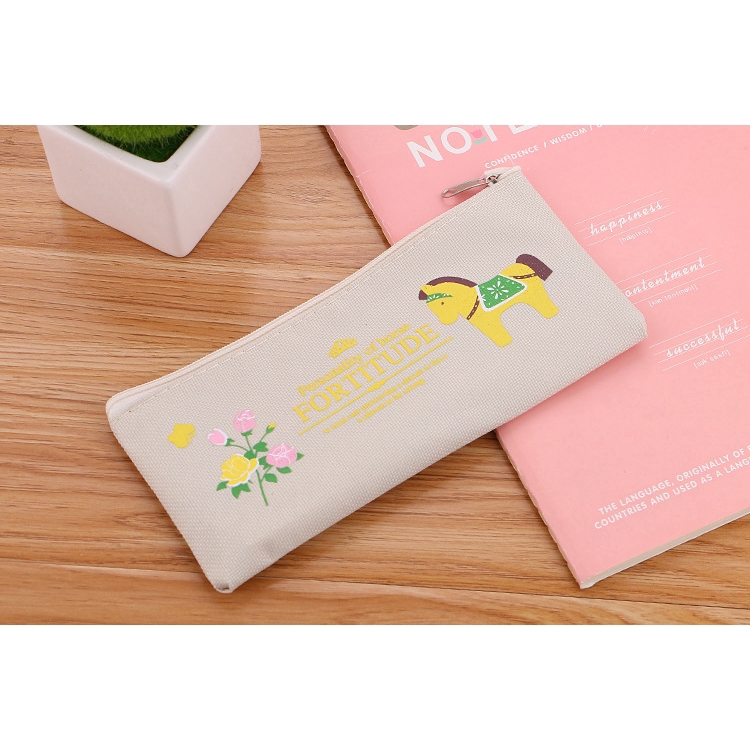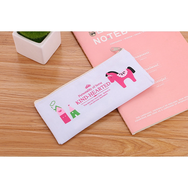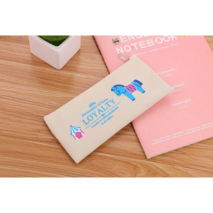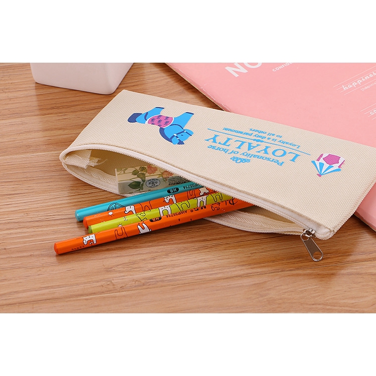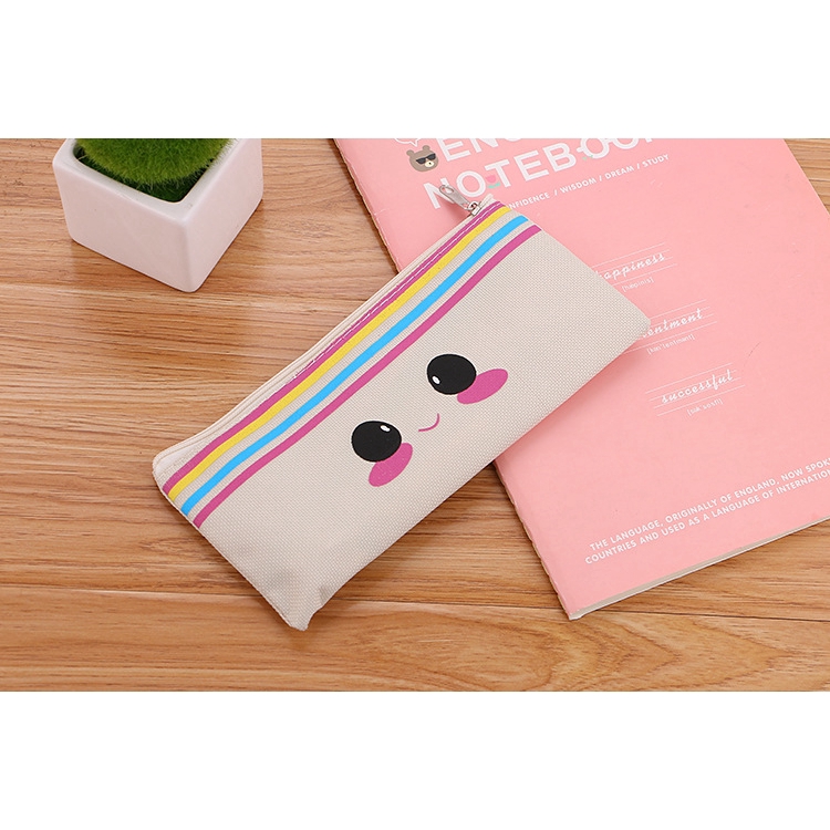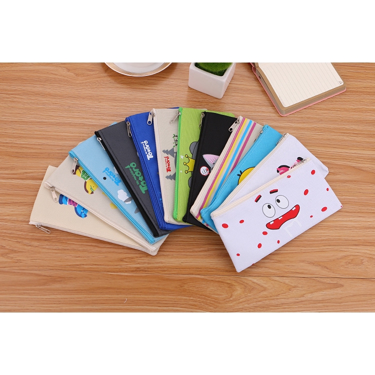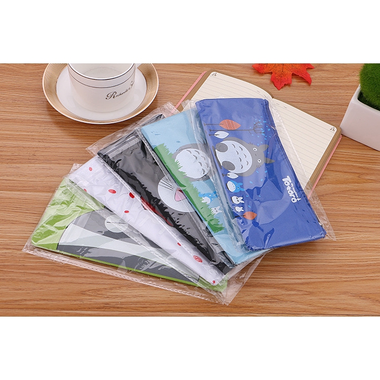 SG Korean Simple Cute Cartoon Canvas Pencil Case Zipper Stationery Bag Student Totoro Pencil Bag