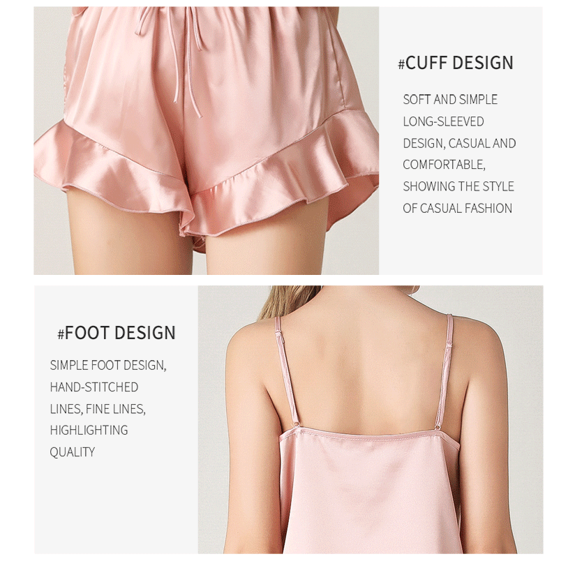 Ladies Sexy Nightwear Silk Satin Sleepwear Sleeveless Pajamas Solid Pyjama Femme Fashion Pijama Set For Women