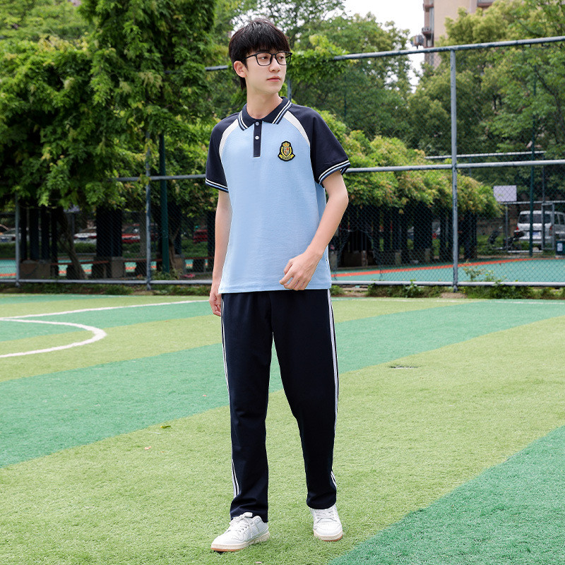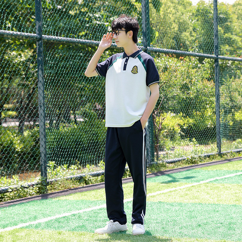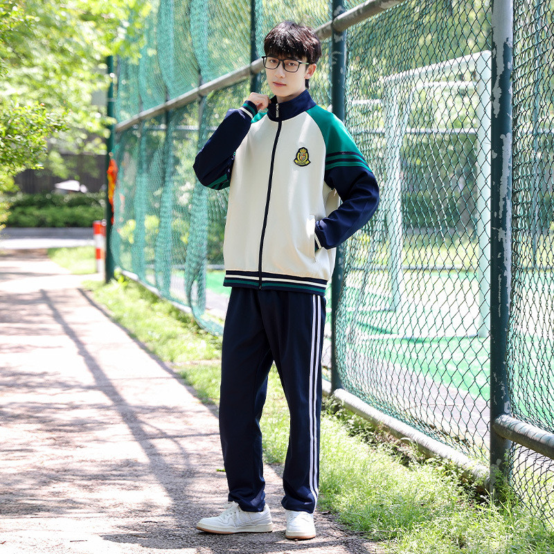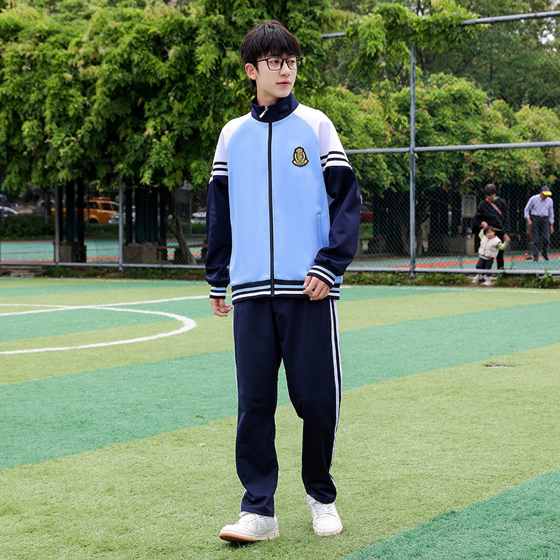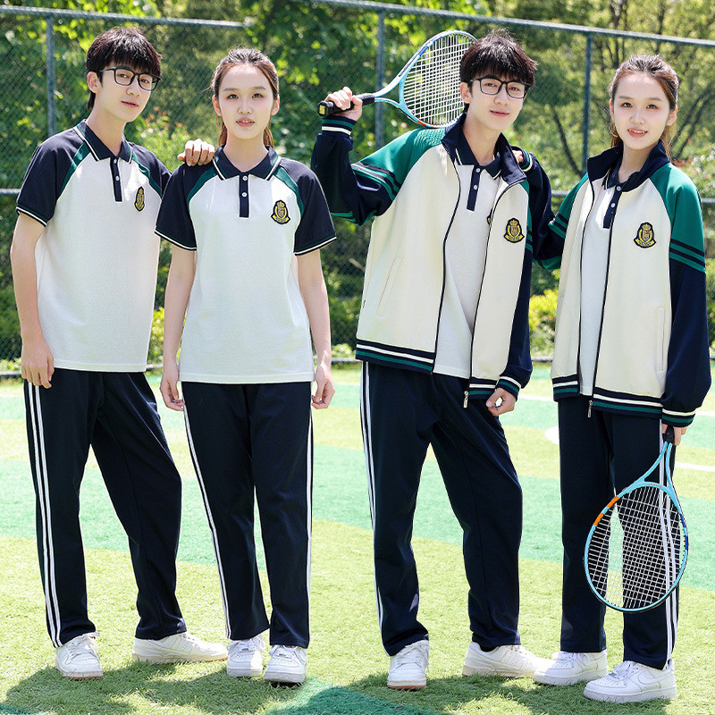 Chinese Campus Elastic Waist Spring Boys Girls Polo School Uniform Unisex Men Women Long Sleeve Sport Middle School Student Individual Set