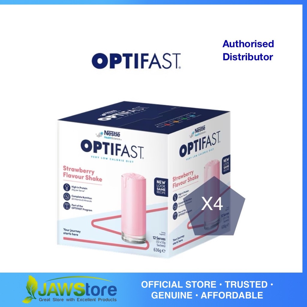 [Bundle of 4] Nestle Optifast Very Low Calorie Diet Milk Shake Strawberry 48X53g