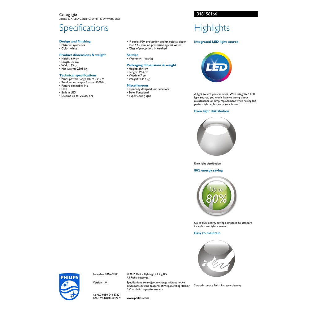 Philips 31815 Slimline Round LED Ceiling Light 17W 2700K Warm White