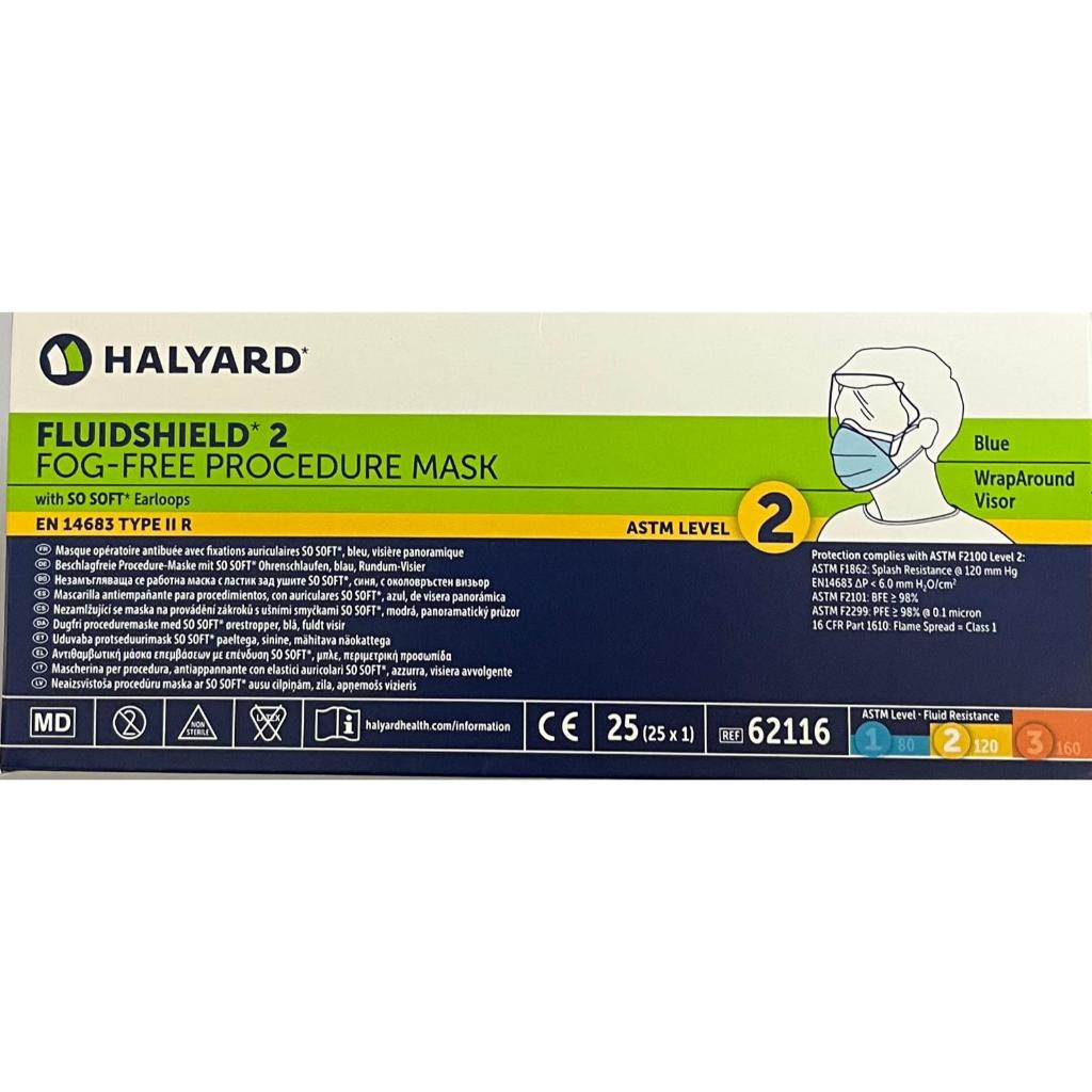 HALYARD FluidShield 2 Fog-free Procedure Mask with wraparound Visor with SO SOFT Earloop