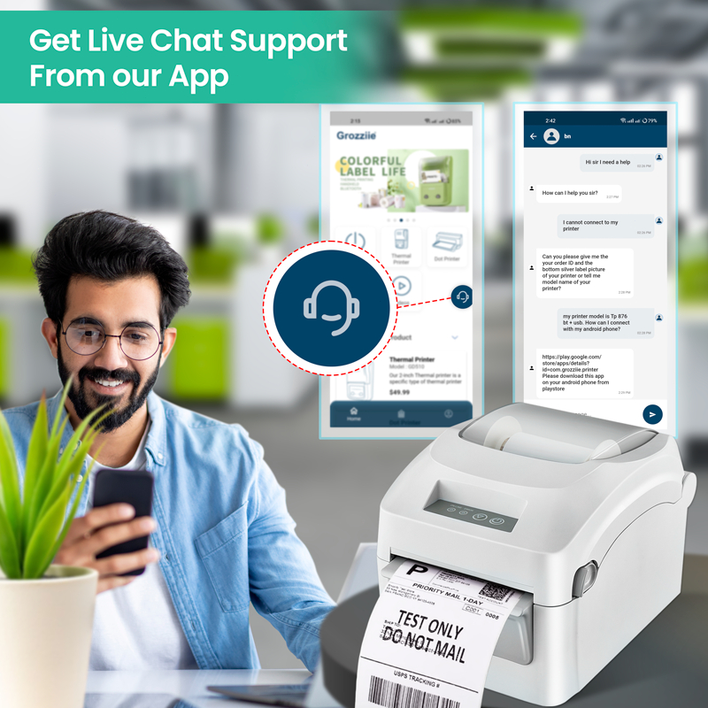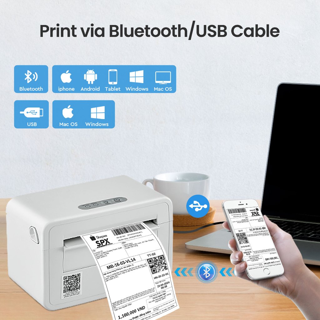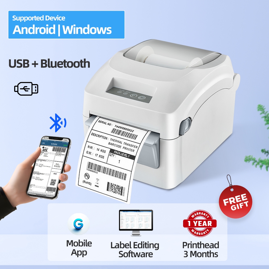 Thermal Label Printer, 203DPI USB-Bluetooth Shipping Label Printer with Label Holder