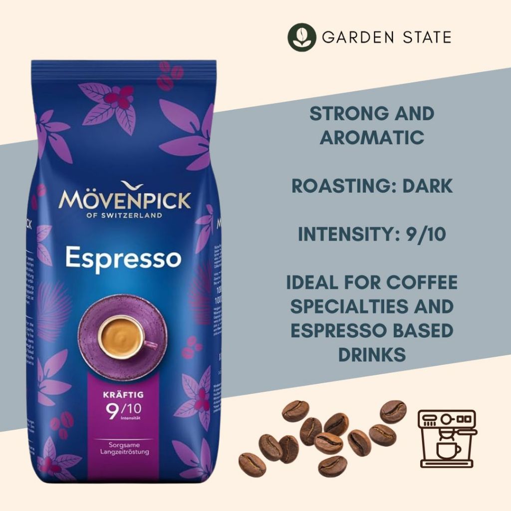 (1kg) Movenpick Espresso Strong (Kraftig), Whole Coffee Beans. Dark Roast, 9/10 Intensity.