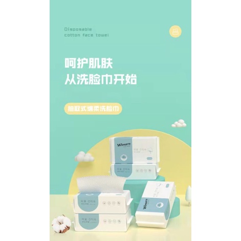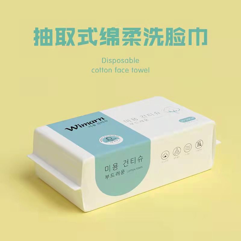 100pcs Korean WIMARN wet & dry disposable pure cotton facial wipe makeup cleansing towel20*20洗脸巾洗脸巾 一次性 洁面巾 棉柔巾