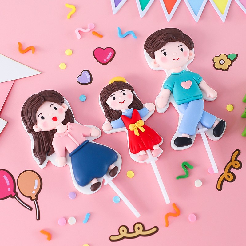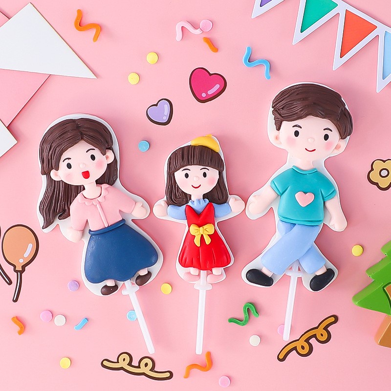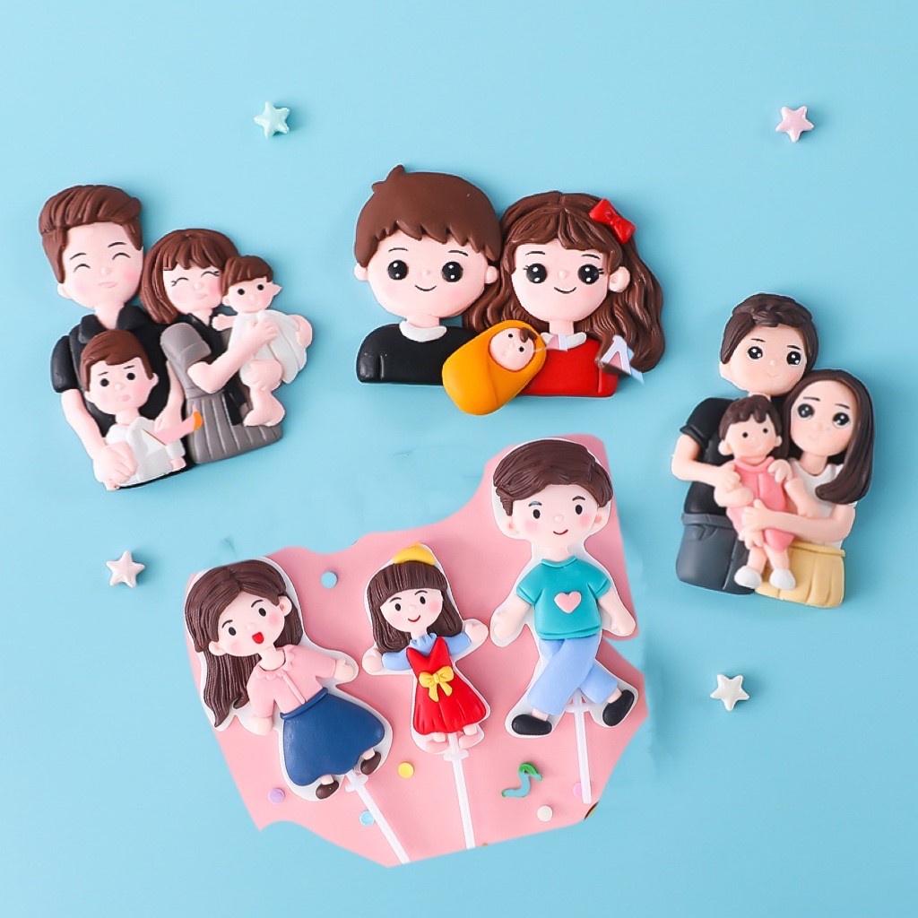 Family Cake Topper Family / father mother daughter son kid girl boy Cake Decoration 软胶软陶亲子一家人蛋糕装饰插件烘焙