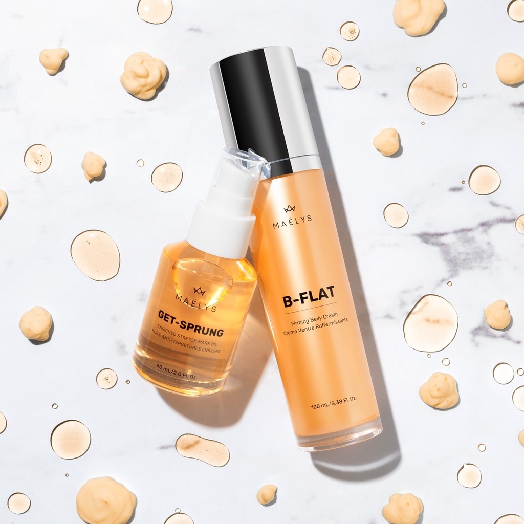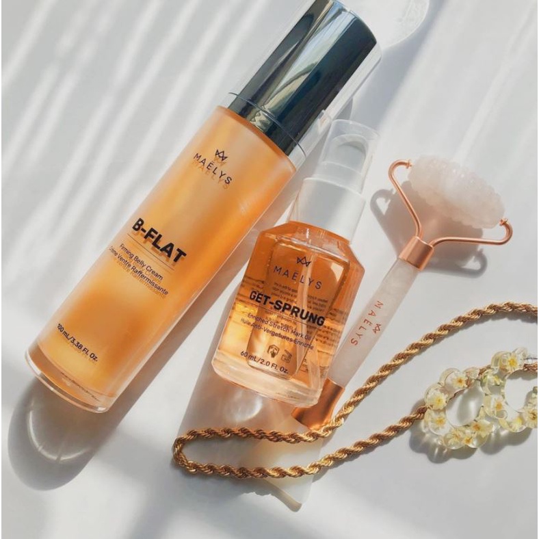 💯[Lowest Price ,**Free Gifts] Maelys B-Flat Belly Firming Cream and Get Sprung Enriched Stretch Mark Oil