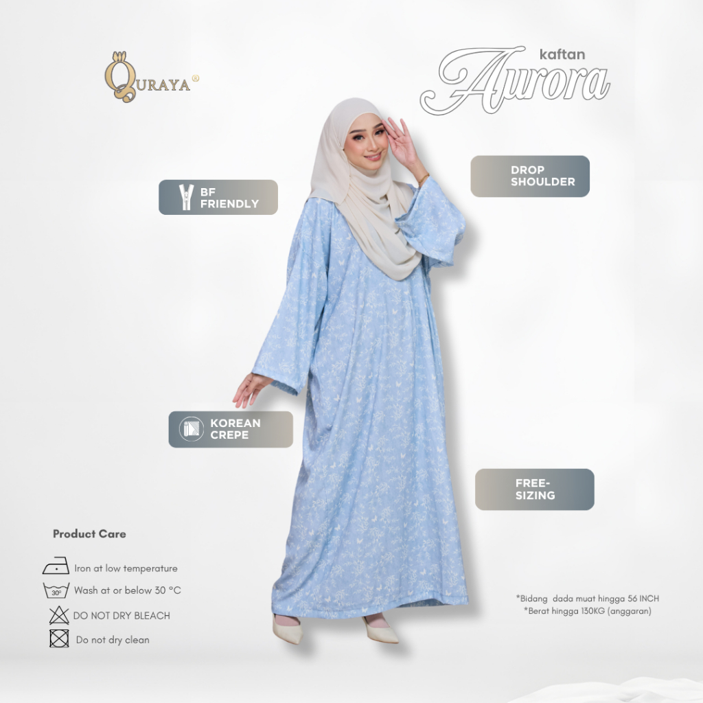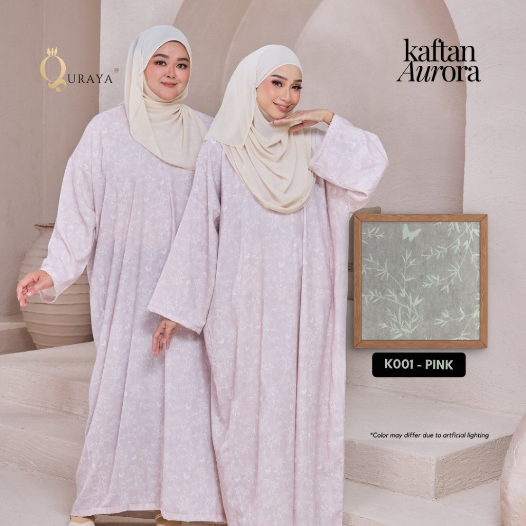BAJU KAFTAN AURORA OFFICIAL BY QURAYA HQ FREE SIZE LOOSE PLUSSIZE UP TO 130KG KOREAN CREPE PEREMPUAN