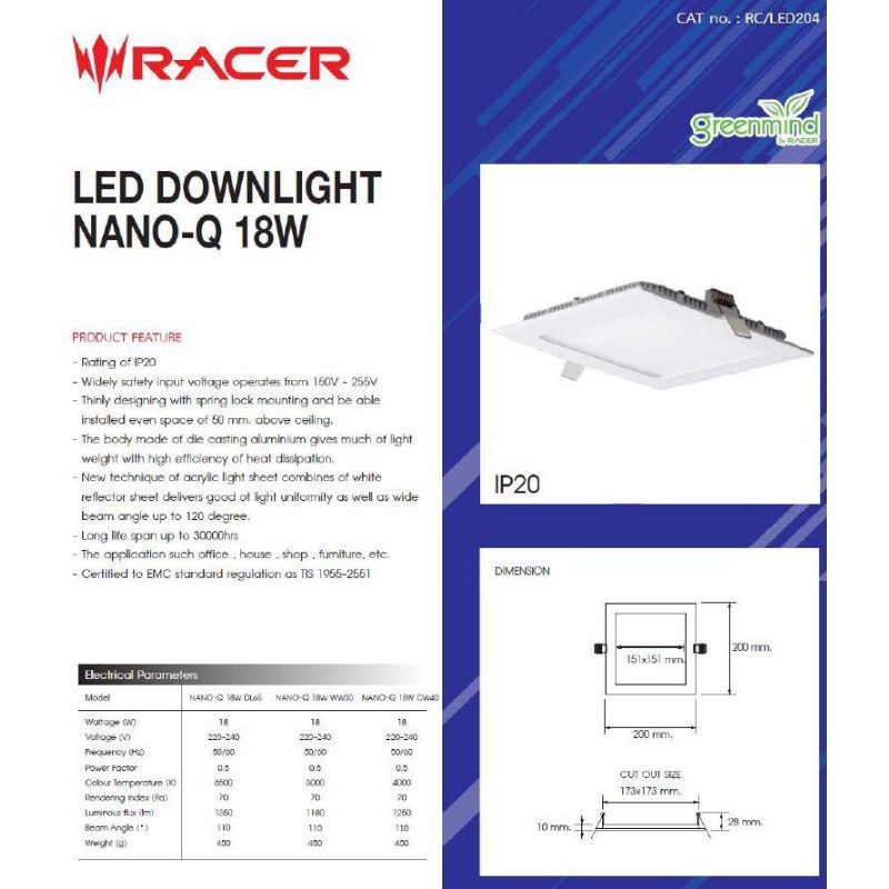 [2pc bundle!] Racer LED Recessed Downlight 18W Square 173mm 3000K/4000K/6500K