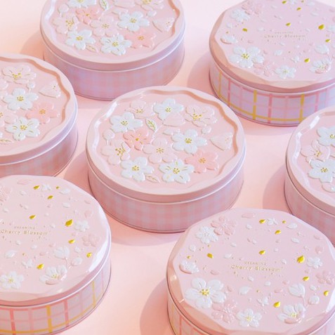 DAISO KOREA X Dreaming Cherry Blossom Collection - Spring Pink Sakura Tin Case Storage Box (15cm)