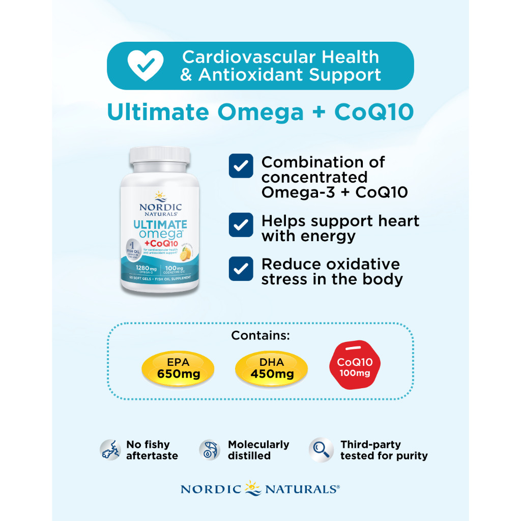Nordic Naturals Ultimate Omega + CoQ10 (100mg) 60 Softgels - For Healthy Heart and Antioxidant Support